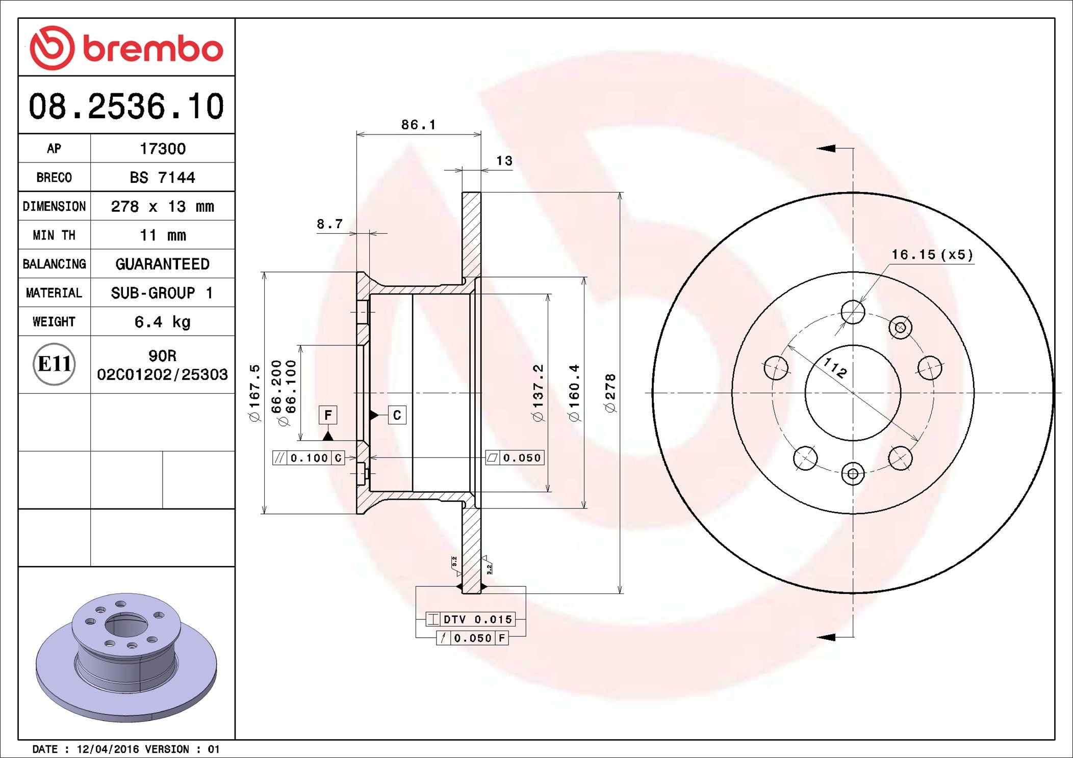 BREMBO 08.2536.10 | Fren Diski Ön Standard VW | 2 Adet