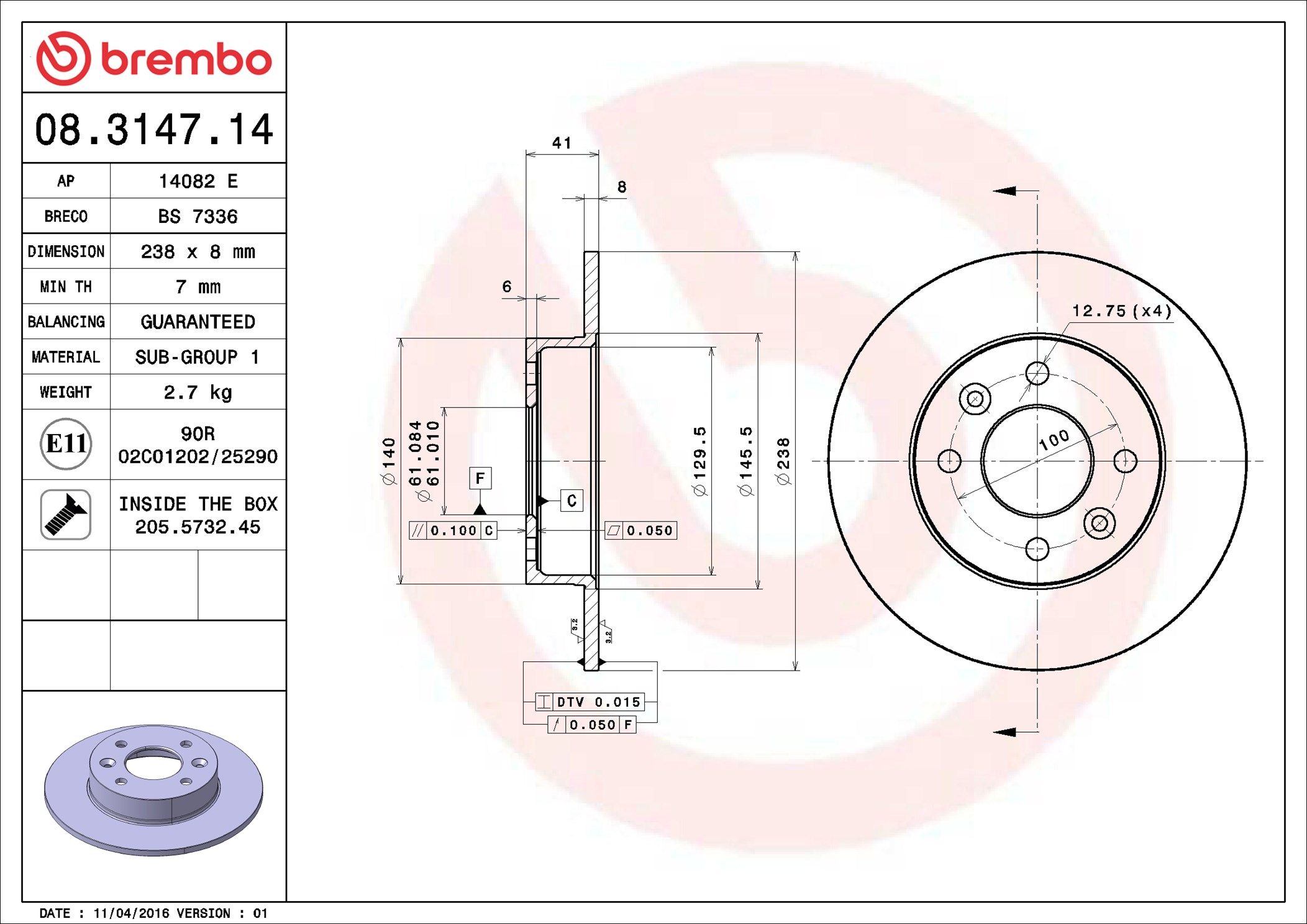 BREMBO 08.3147.14 | Fren Diski Ön Standard Renault | 2 Adet