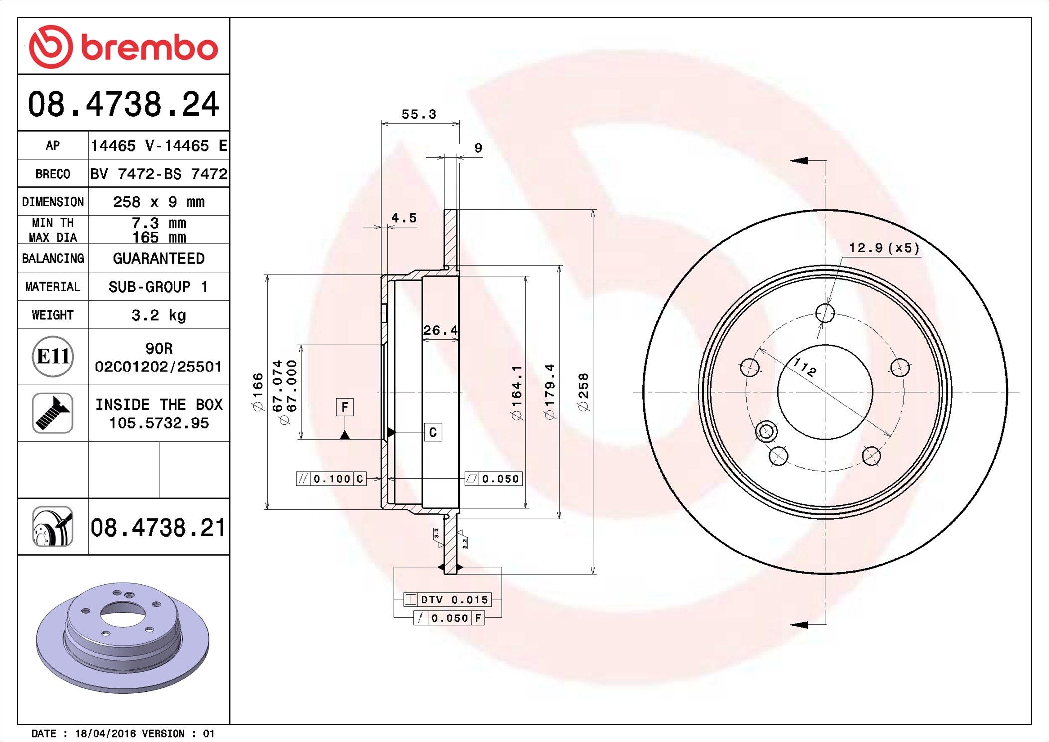 BREMBO 08.4738.21 | Fren Diski (Mercedes W124-W201-W202 Arka) | 1 Adet