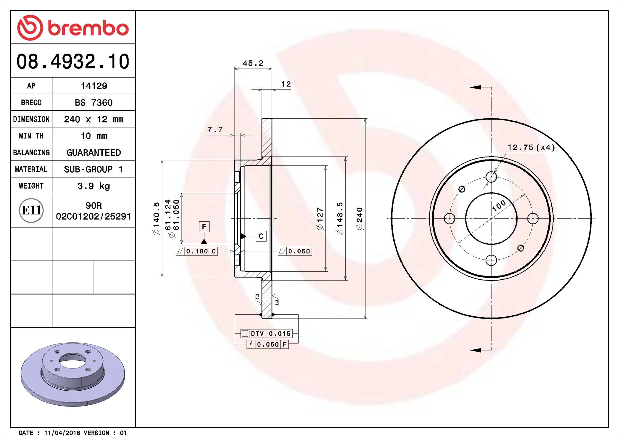 BREMBO 08.4932.10 | Fren Diski Ön Standard Nissan | 2 Adet (Fren diski)