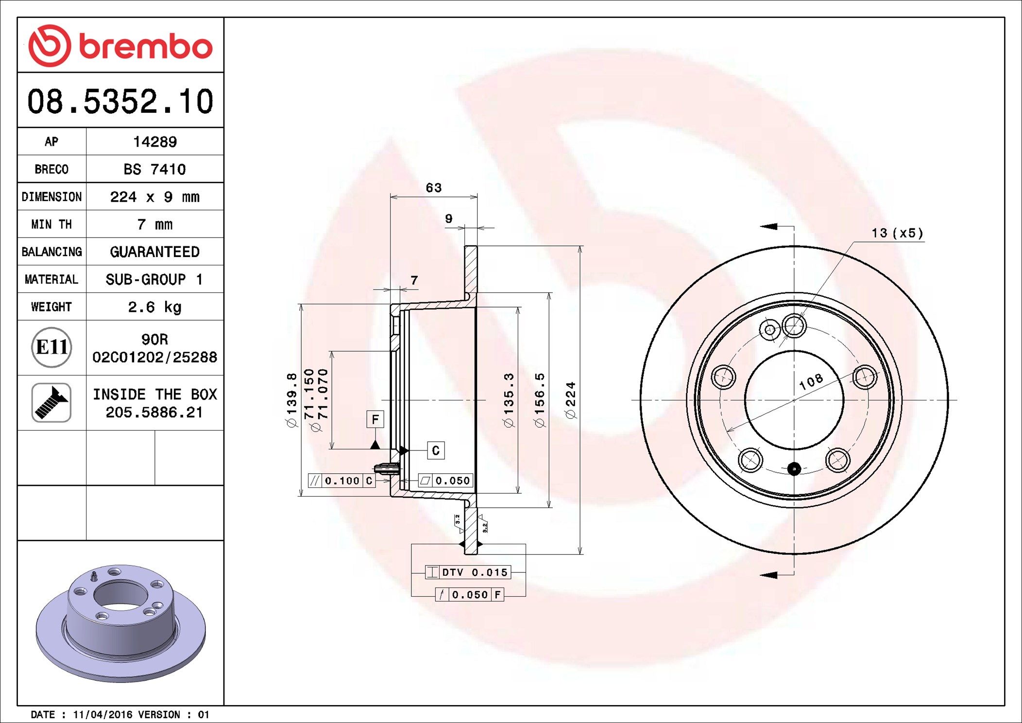 BREMBO 08.5352.10 | Fren Diski Arka Standard Citroen | 2 Adet