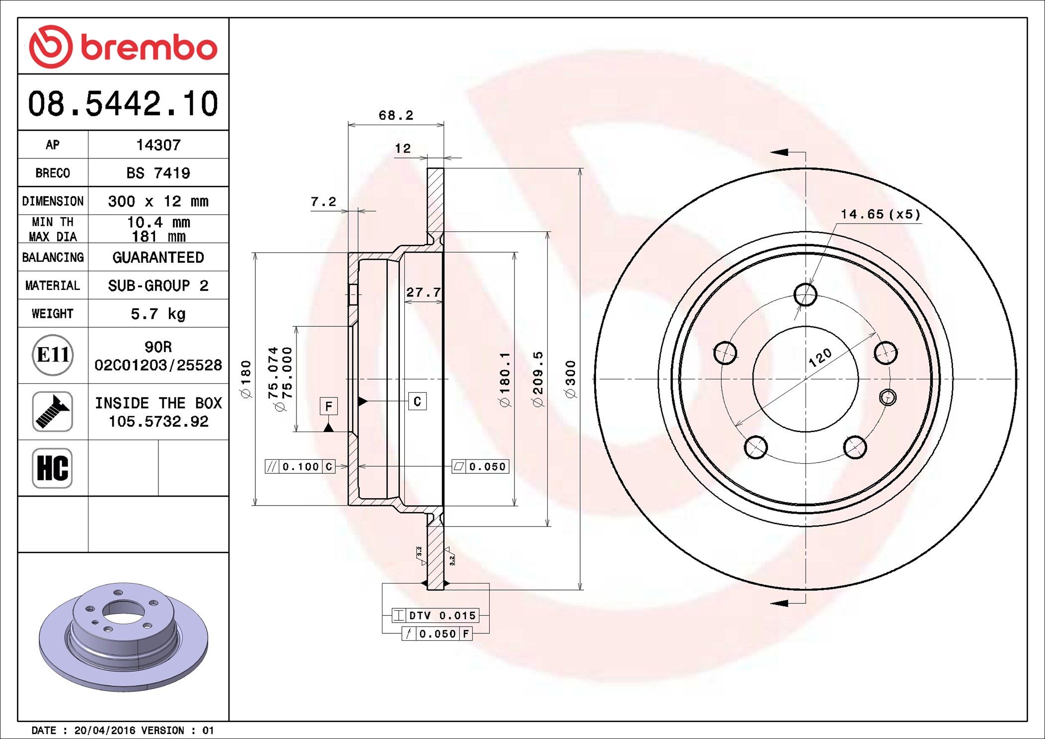 BREMBO 08.5442.10 | Fren Diski Arka Standard BMW | 2 Adet (Fren diski)