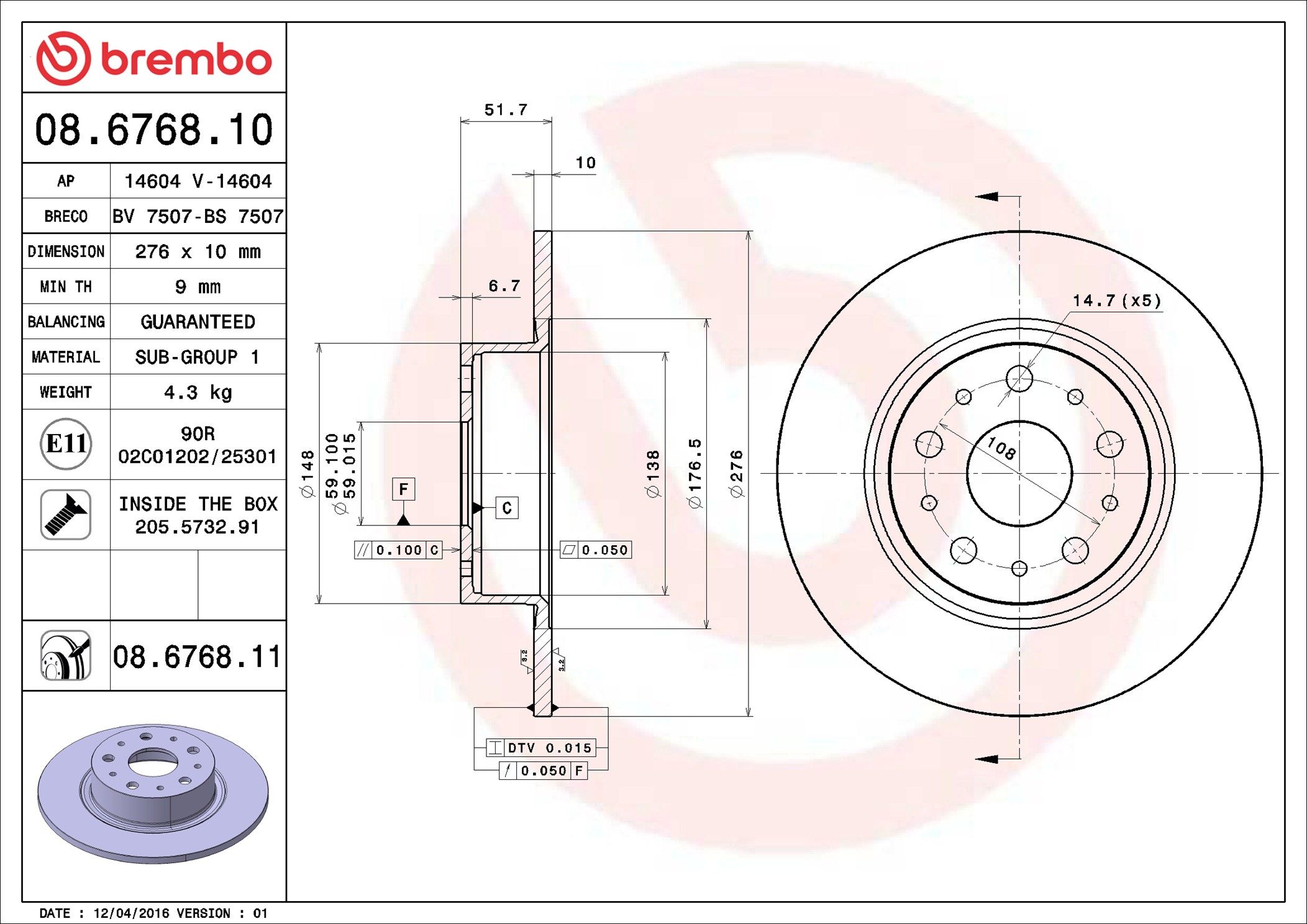 BREMBO 08.6768.11 | Fren Diski Arka UV Coated Alfa Romeo | 2 Adet