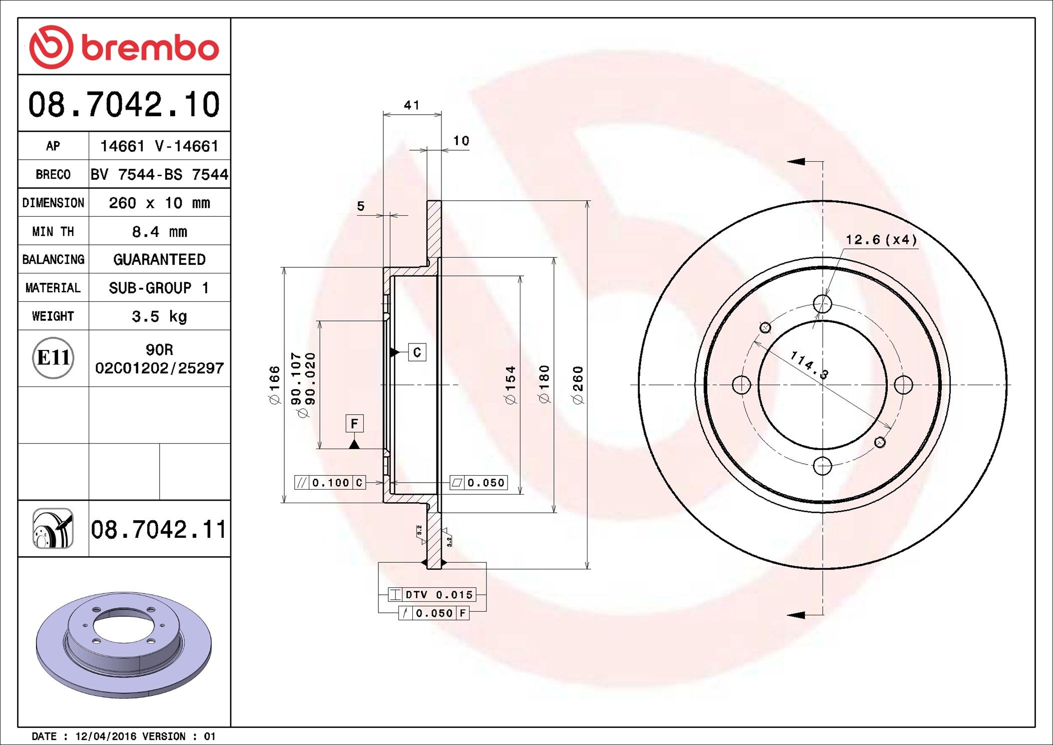 BREMBO 08.7042.10 | Fren Diski Arka Standard Volvo | 2 Adet