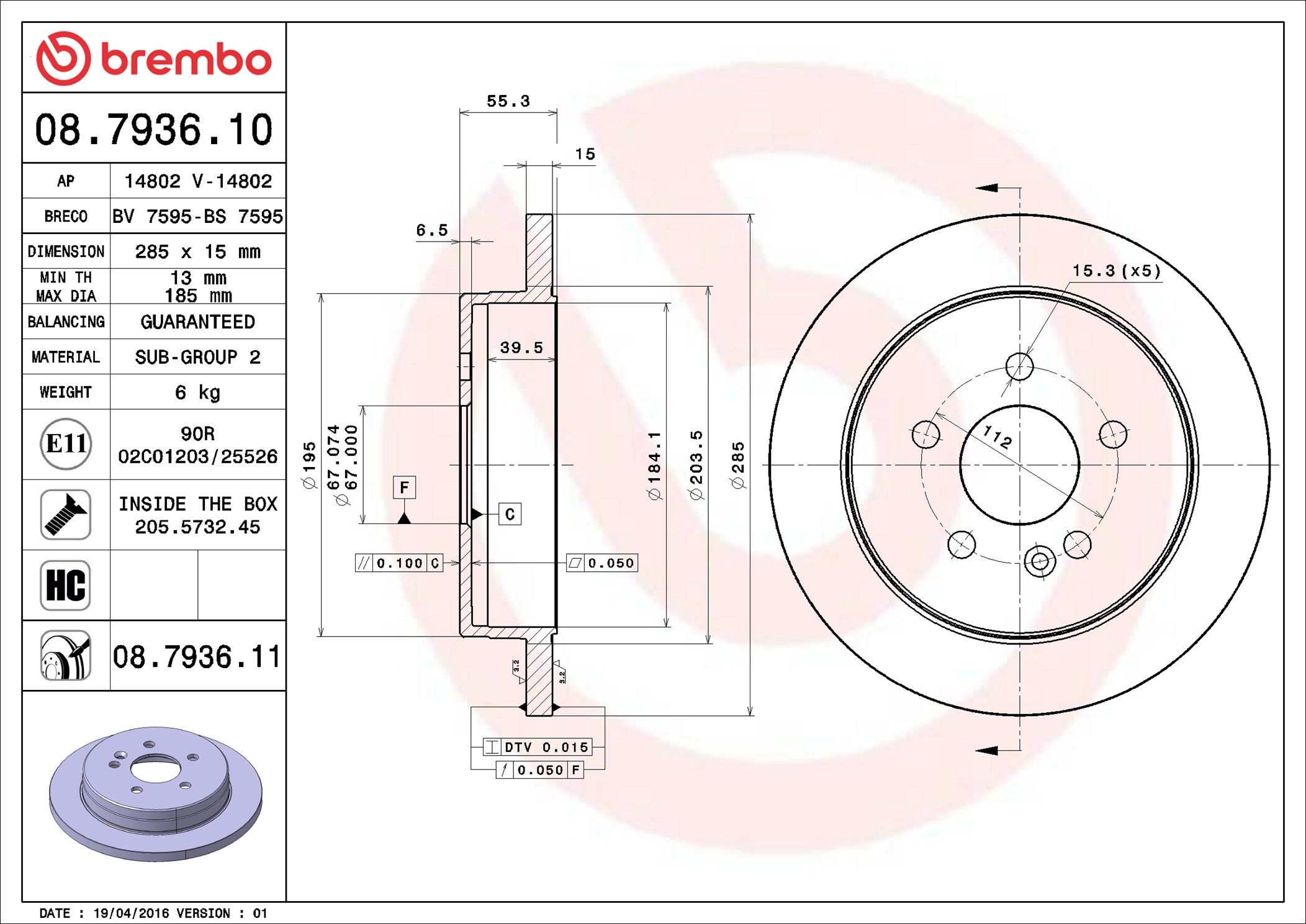 BREMBO 08.7936.11 | Fren Diski Arka UV Coated Mercedes-Benz | 2 Adet