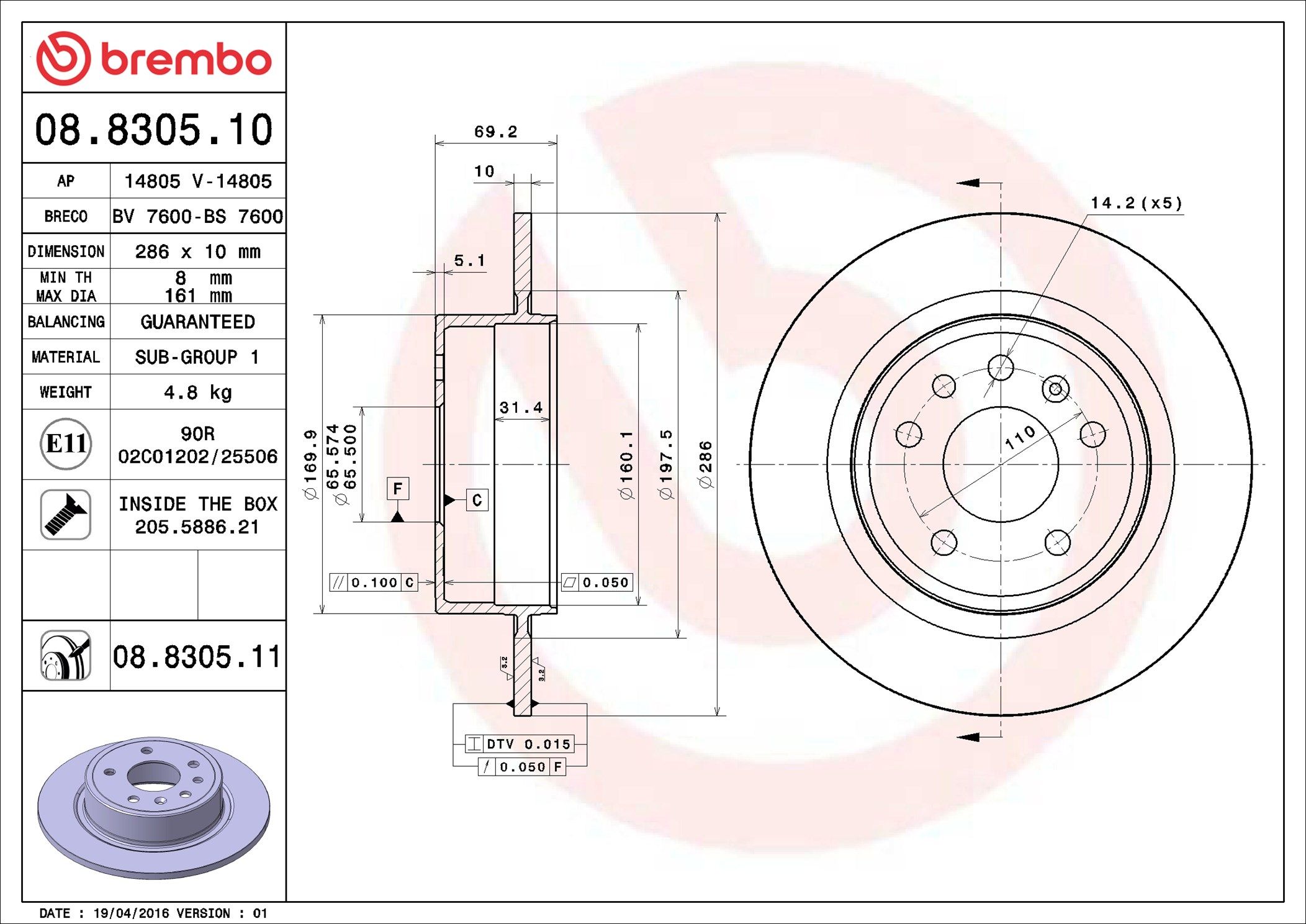 BREMBO 08.8305.11 | Fren Diski Arka UV Coated Saab | 2 Adet