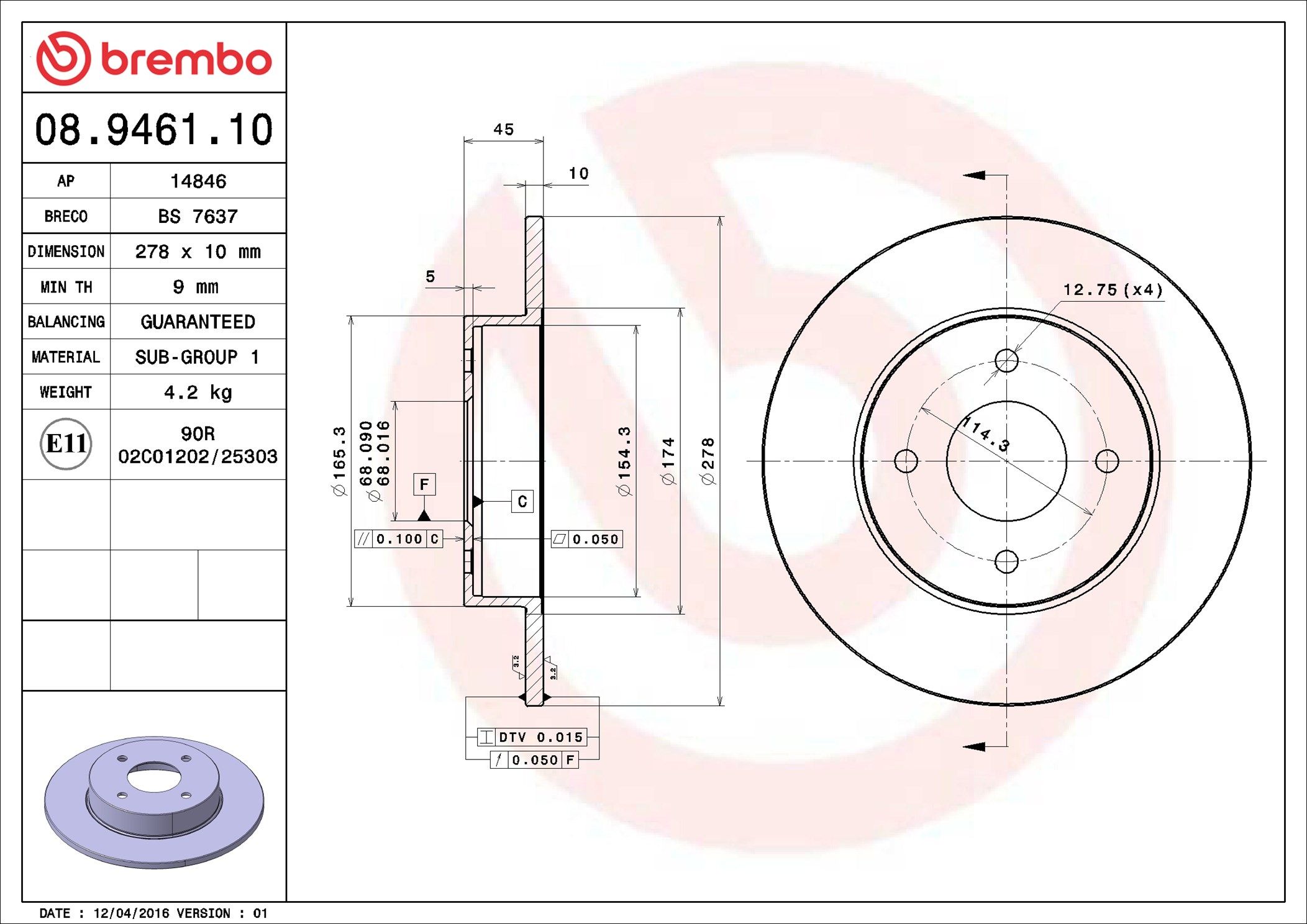 BREMBO 08.9461.10 | Fren Diski Arka Standard Nissan | 2 Adet