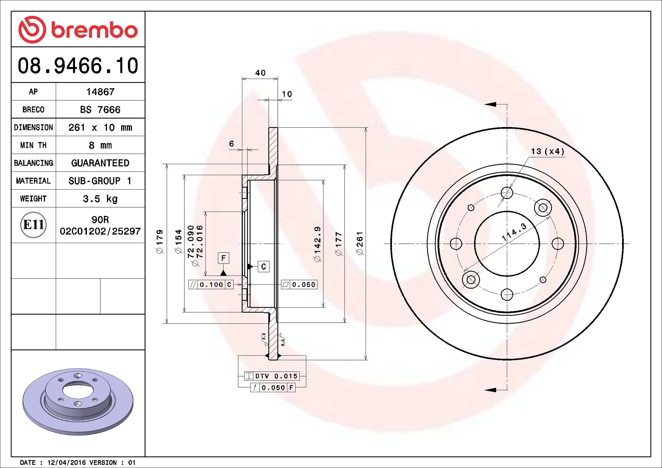 BREMBO 08.9466.10 | Fren Diski Arka Standard Kia | 2 Adet (Fren diski)