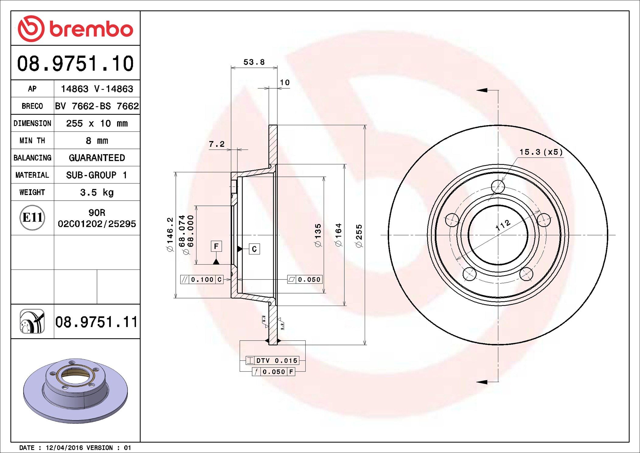 BREMBO 08.9751.11 | Fren Diski Arka UV Coated Audi | 2 Adet
