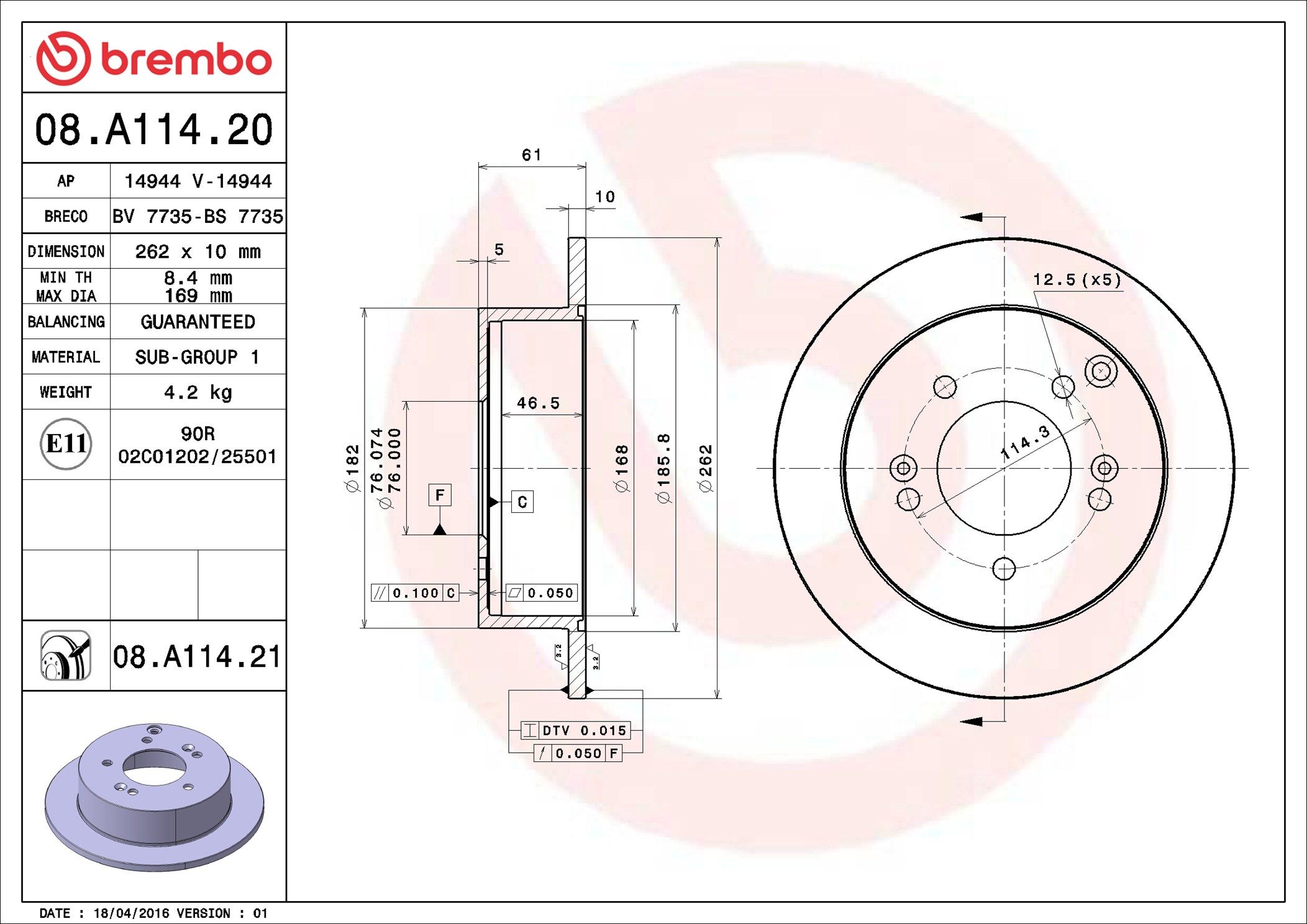 BREMBO 08.A114.20 | Fren Diski Arka Standard Hyundai | 2 Adet (Fren diski)