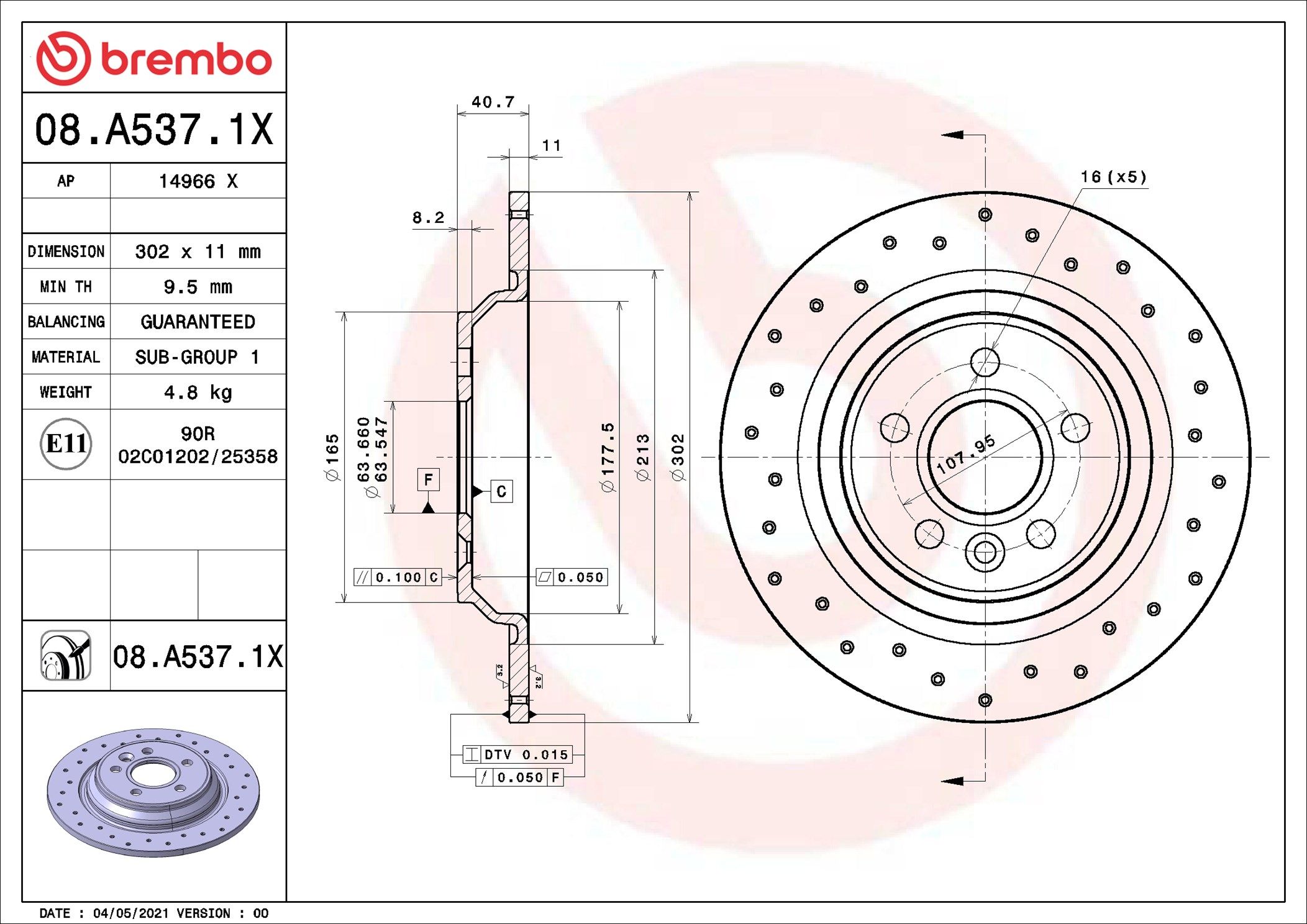 BREMBO 08.A537.1X | Fren Diski Arka Xtra Volvo | 2 Adet
