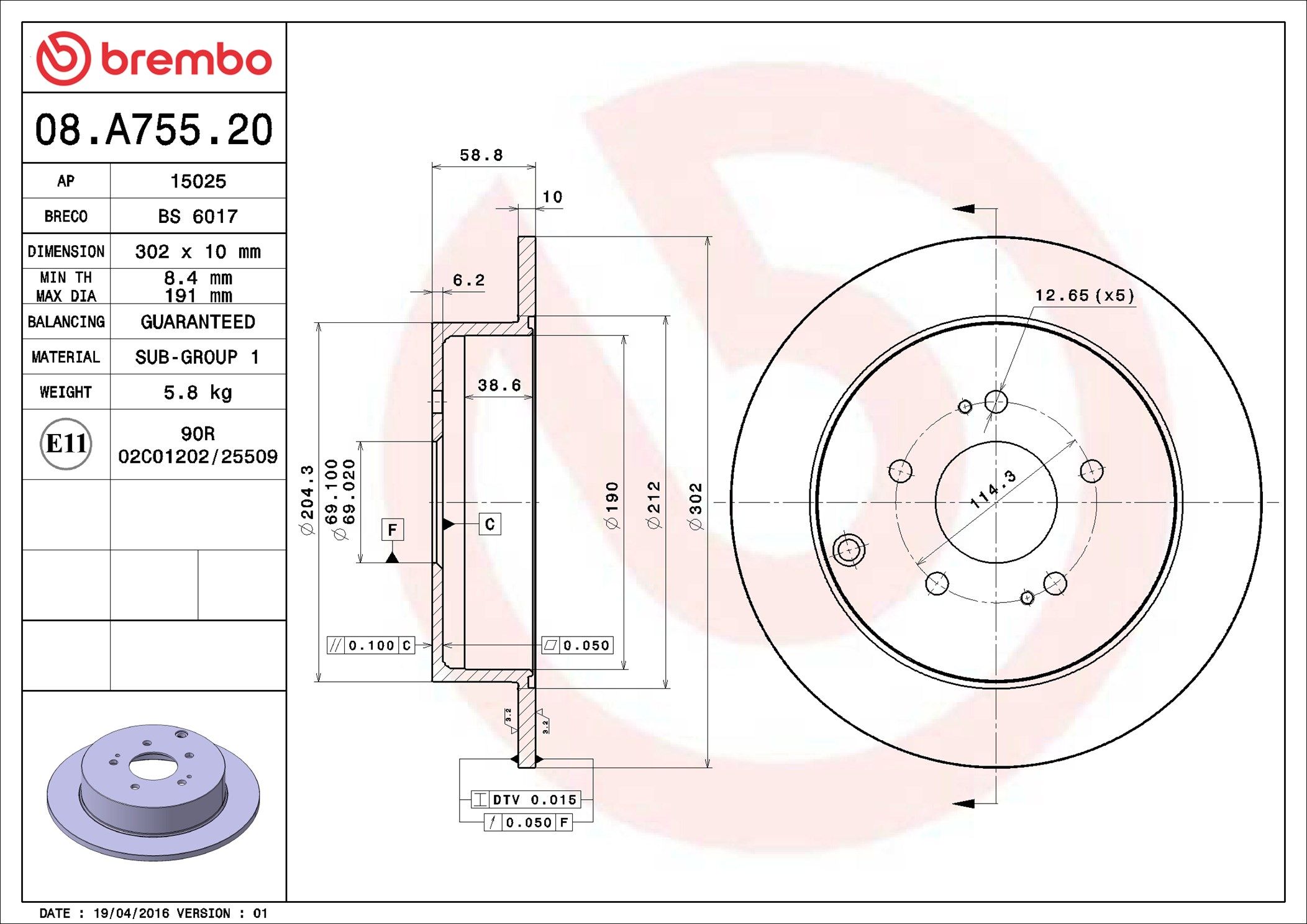 BREMBO 08.A755.20 | Fren Diski Arka Standard Mitsubishi | 2 Adet (Fren diski)