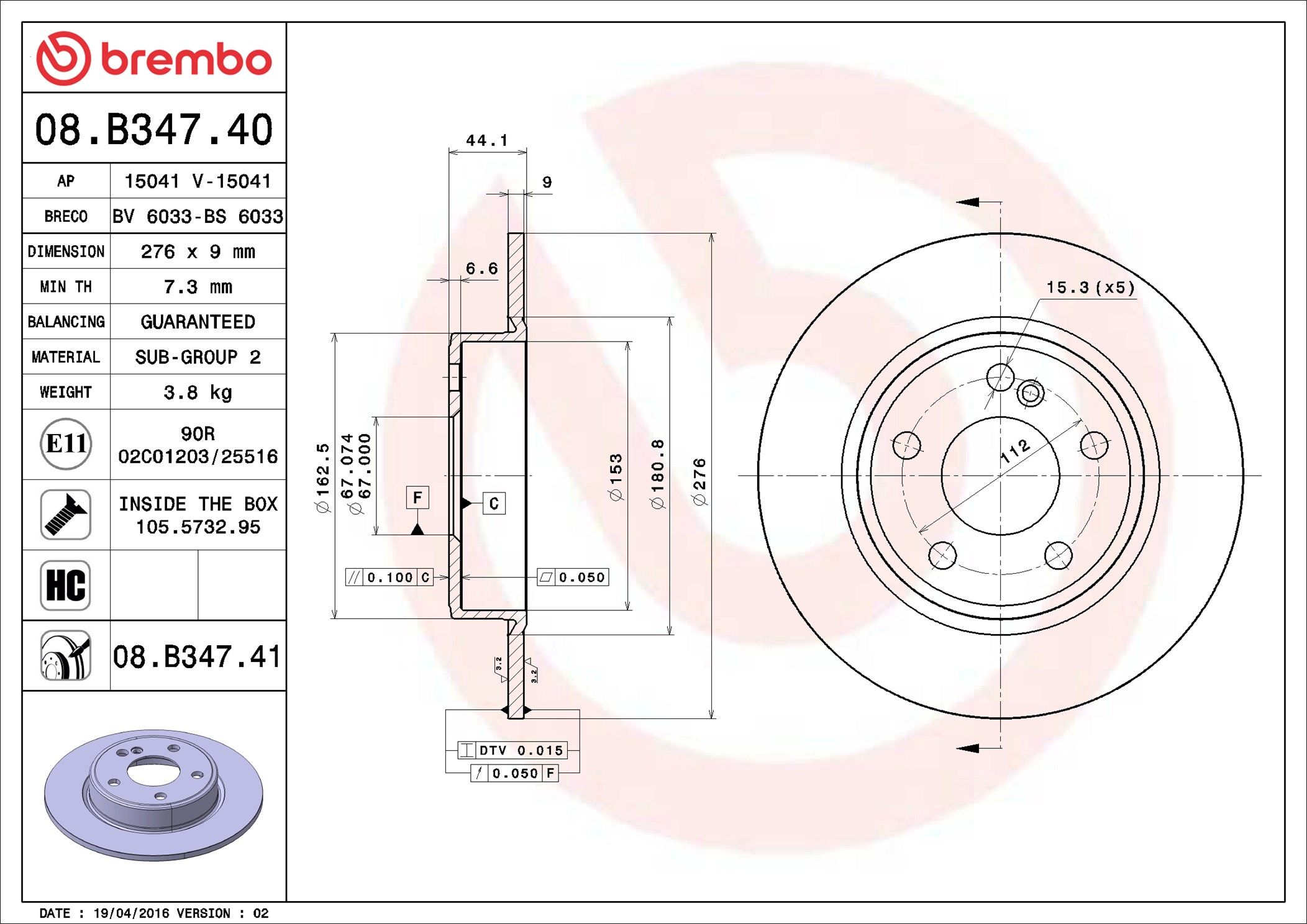BREMBO 08.B347.40 | Fren Diski Arka W117 / W176 / W246 | 1 Adet