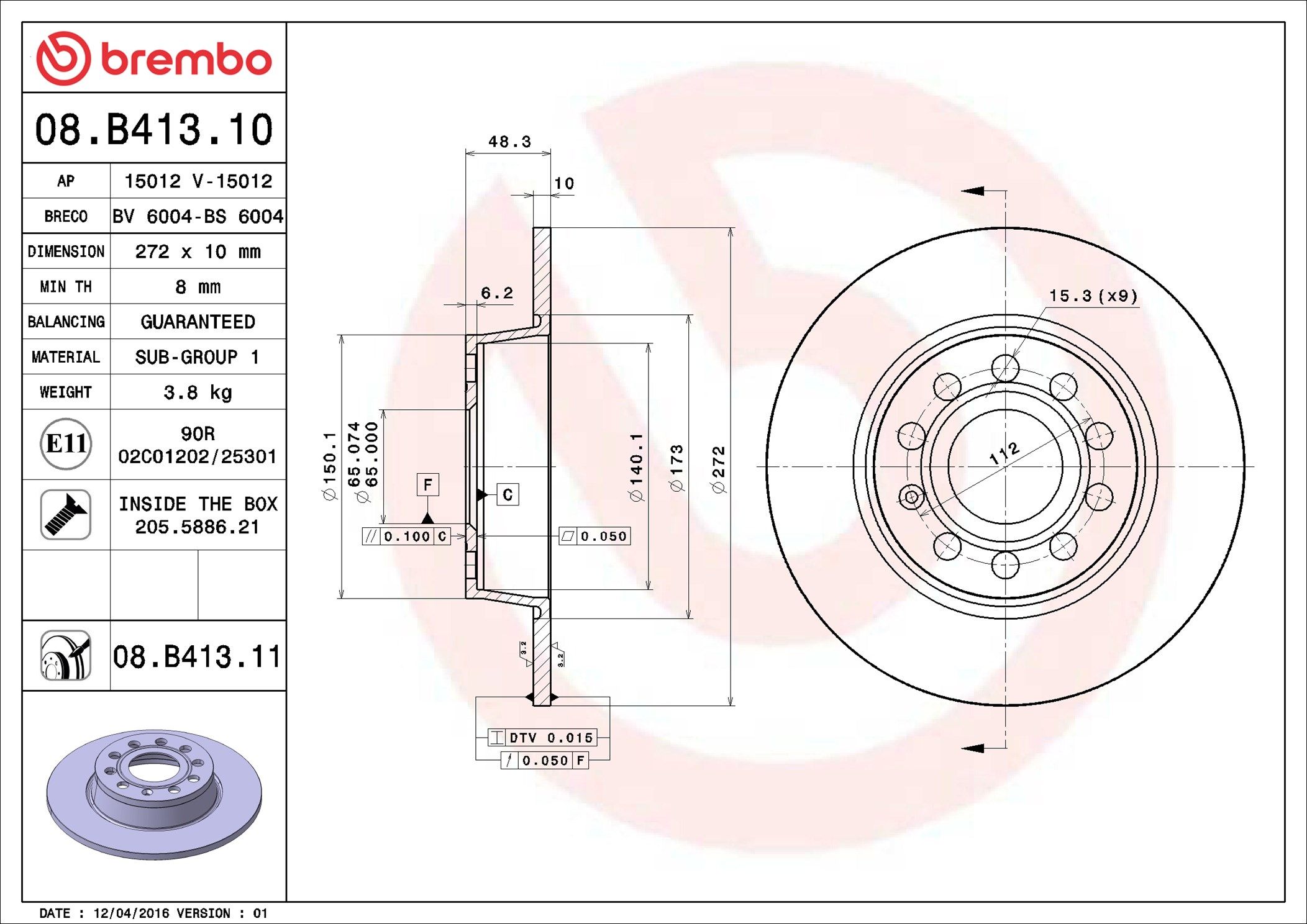 BREMBO 08.B413.10 | Fren Diski Arka Golf | 1 Adet (Fren diski)