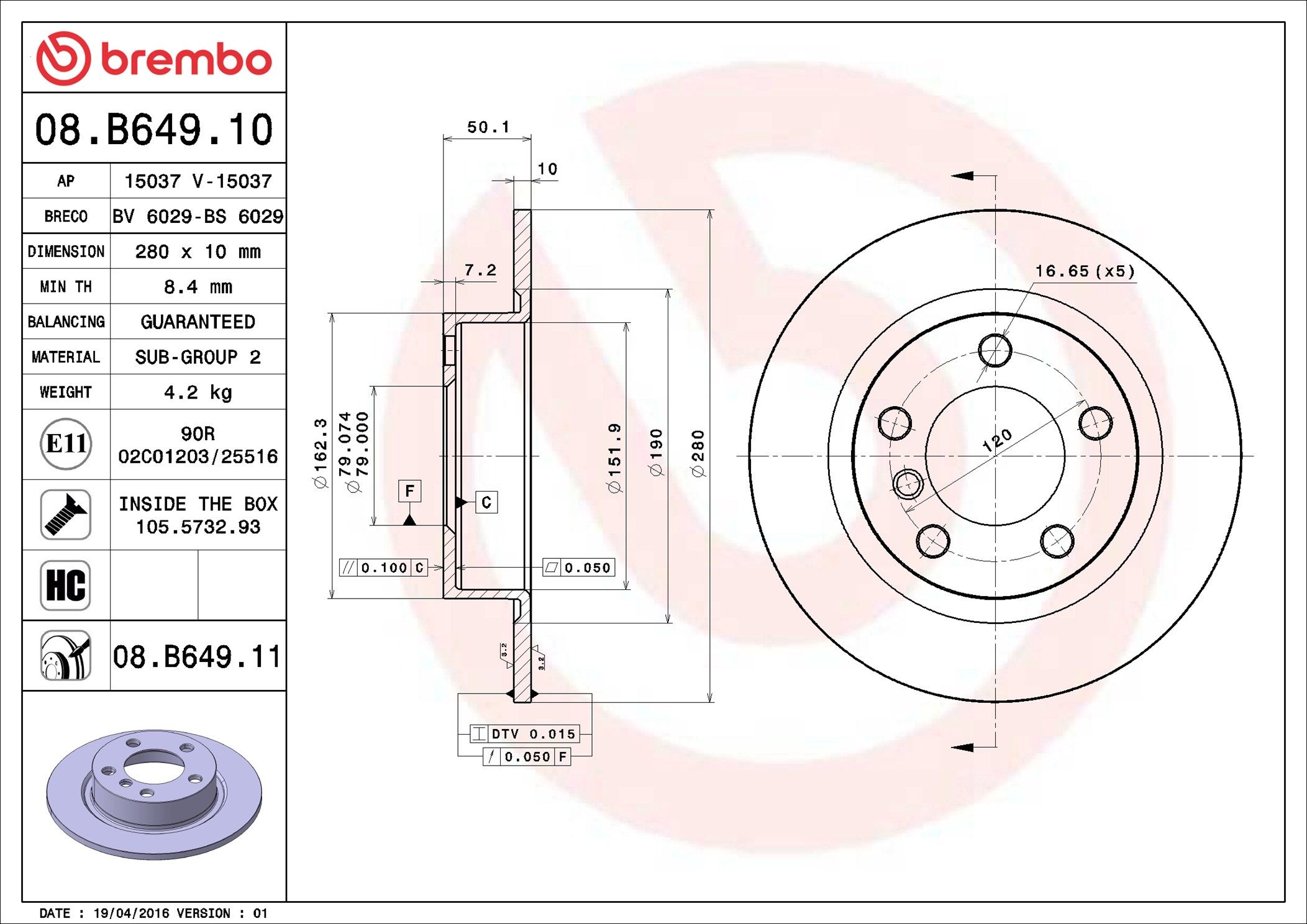 BREMBO 08.B649.10 | Fren Diski Arka Standard Mini | 2 Adet Takım