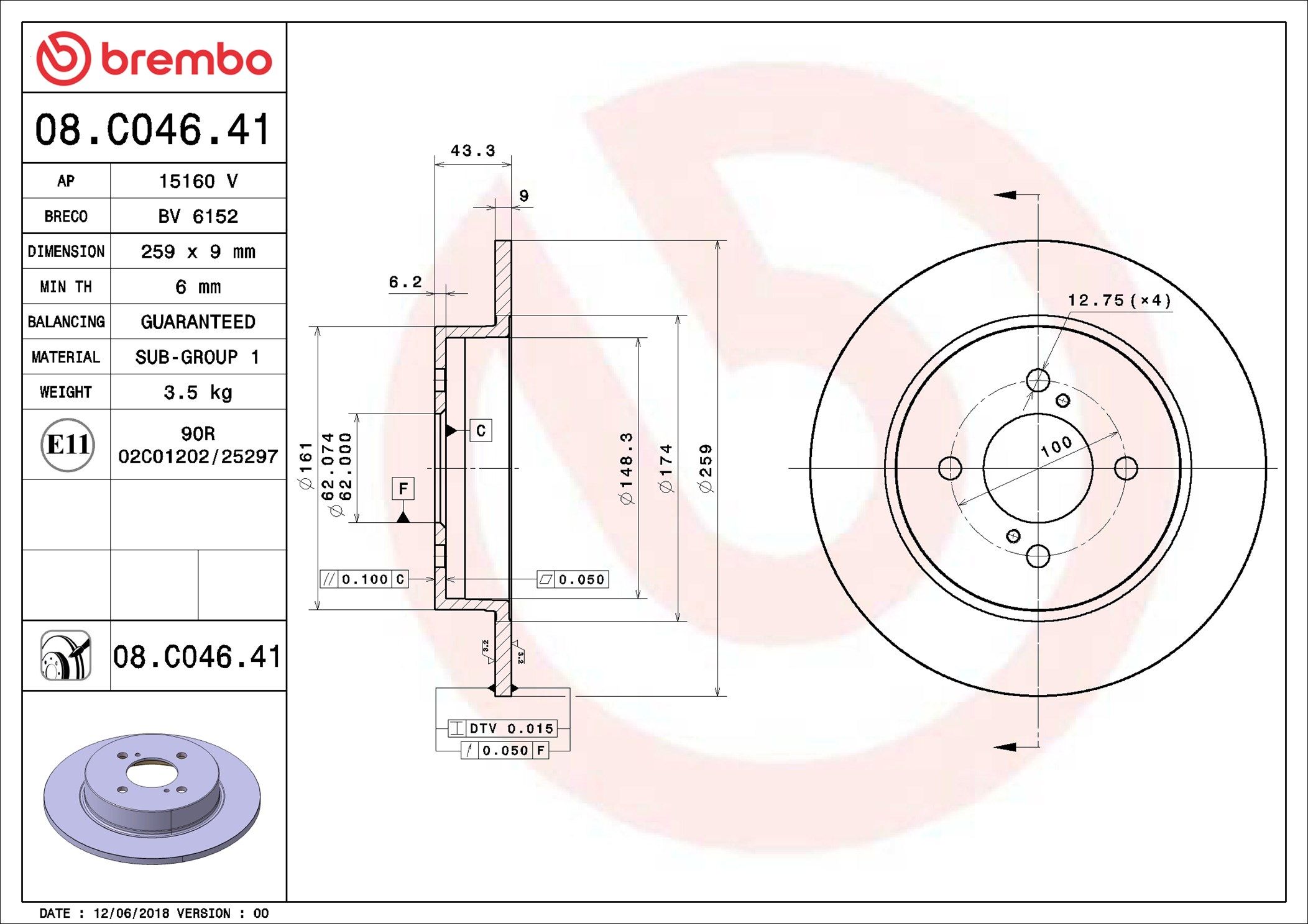 BREMBO 08.C046.41 | Fren Diski Arka UV Coated Suzuki | 2 Adet