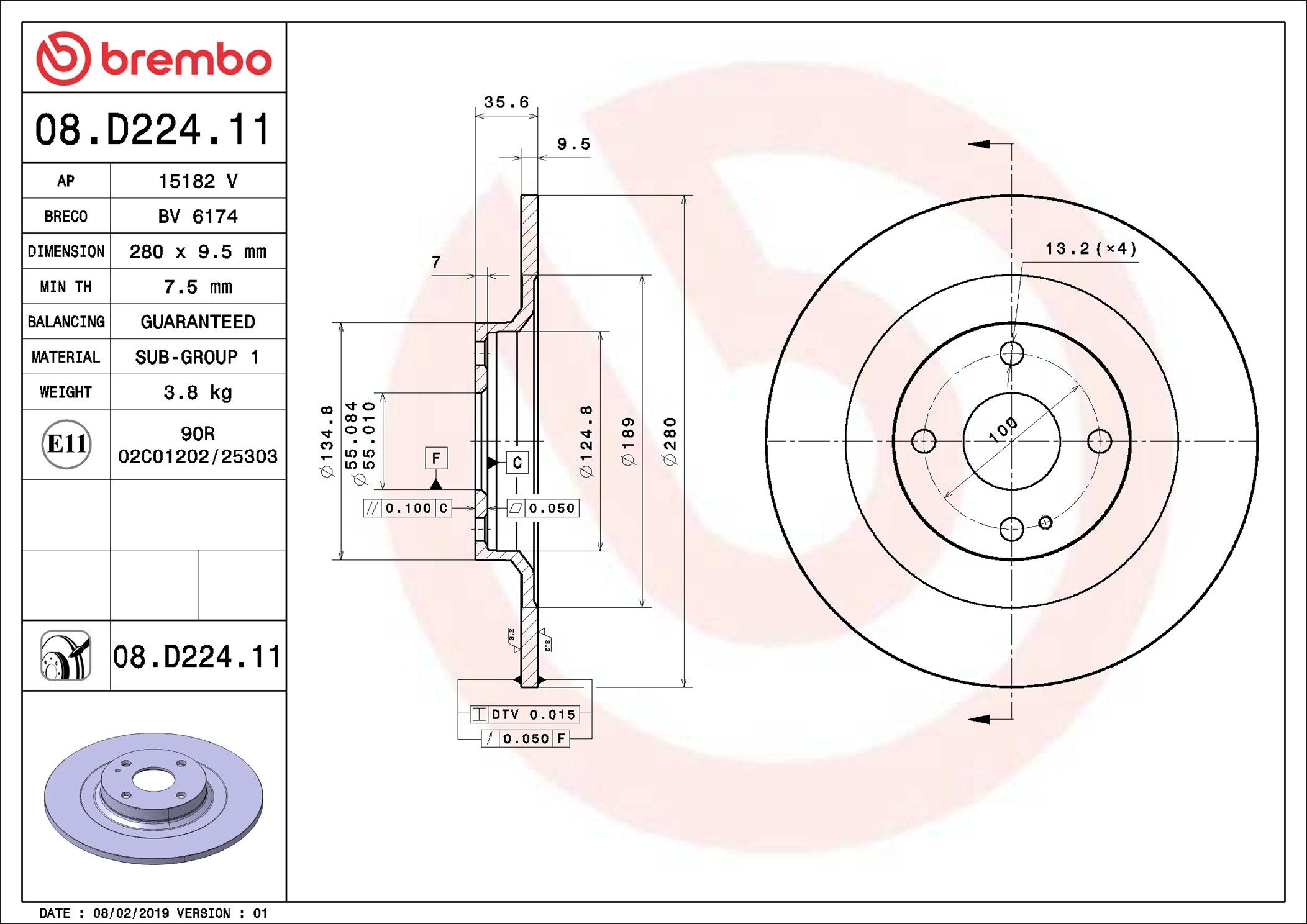 BREMBO 08.D224.11 | Fren Diski Arka UV Coated Mazda | 2 Adet (Fren diski)