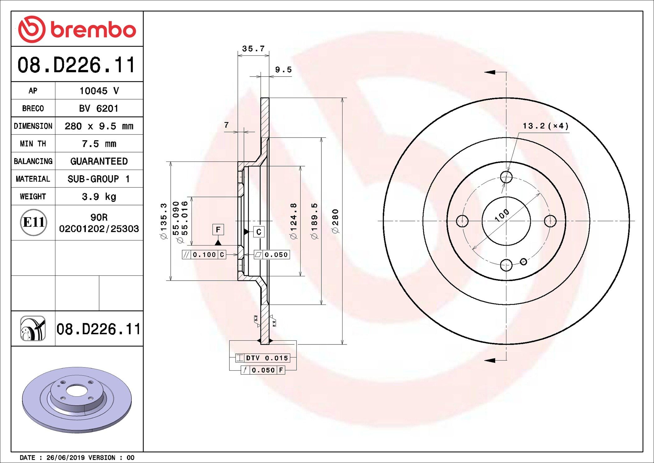 BREMBO 08.D226.11 | Fren Diski Arka UV Coated Fiat | 2 Adet Takım