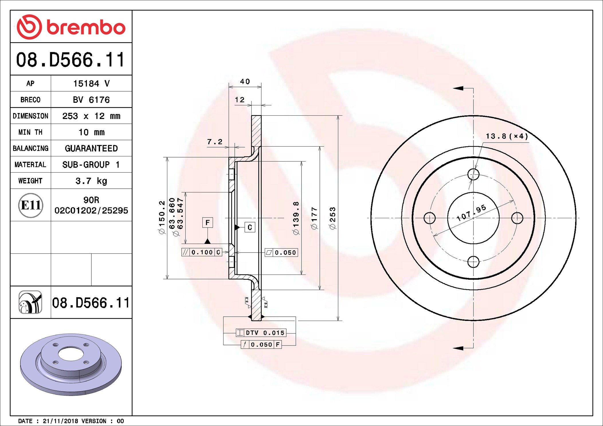 BREMBO 08.D566.11 | Fren Diski Arka UV Coated Ford | 2 Adet