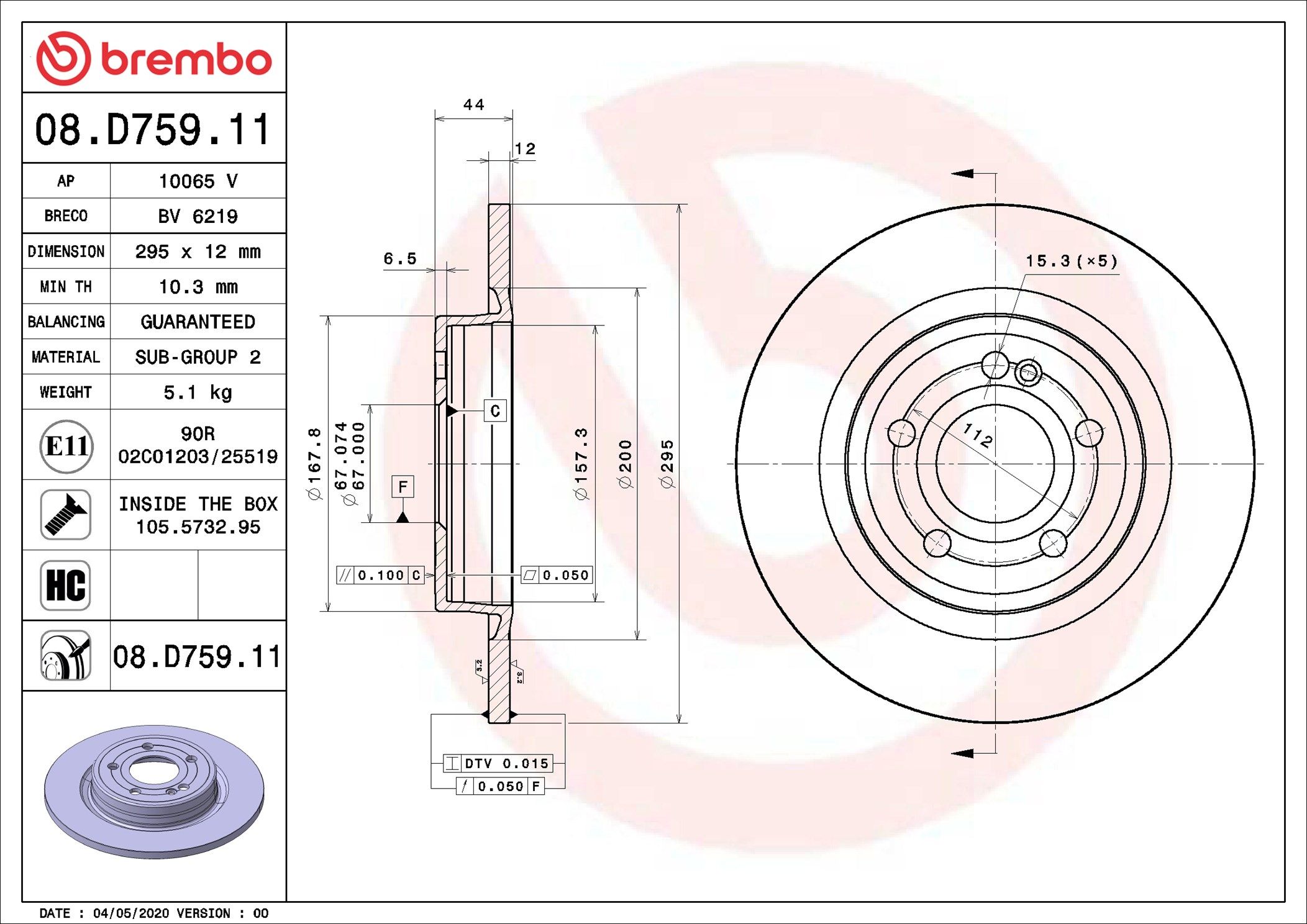 BREMBO 08.D759.11 | Fren Diski Arka W118 / W177 / W247 | 1 Adet (Fren diski)