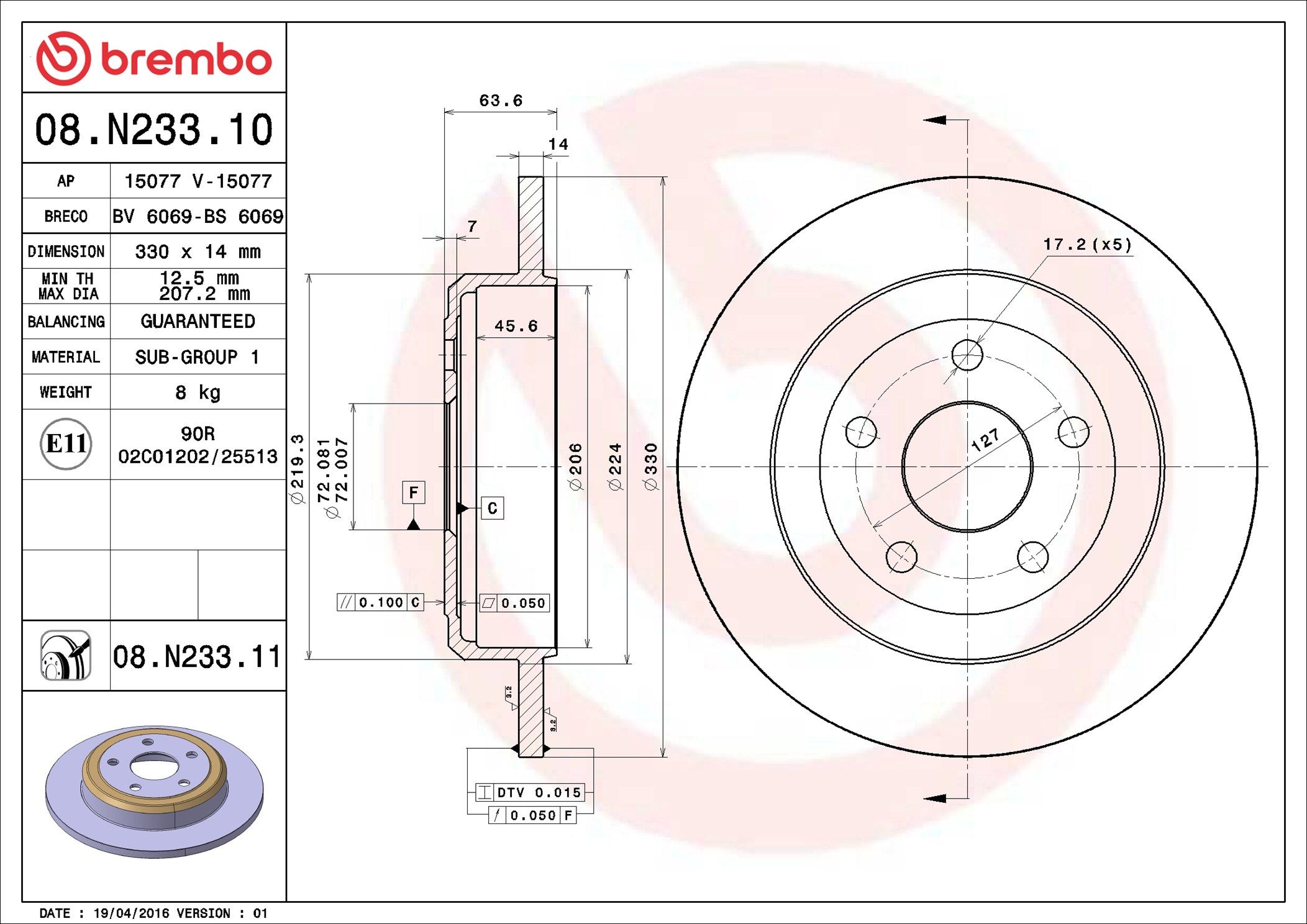 BREMBO 08.N233.11 | Fren Diski Arka UV Coated Jeep | 2 Adet