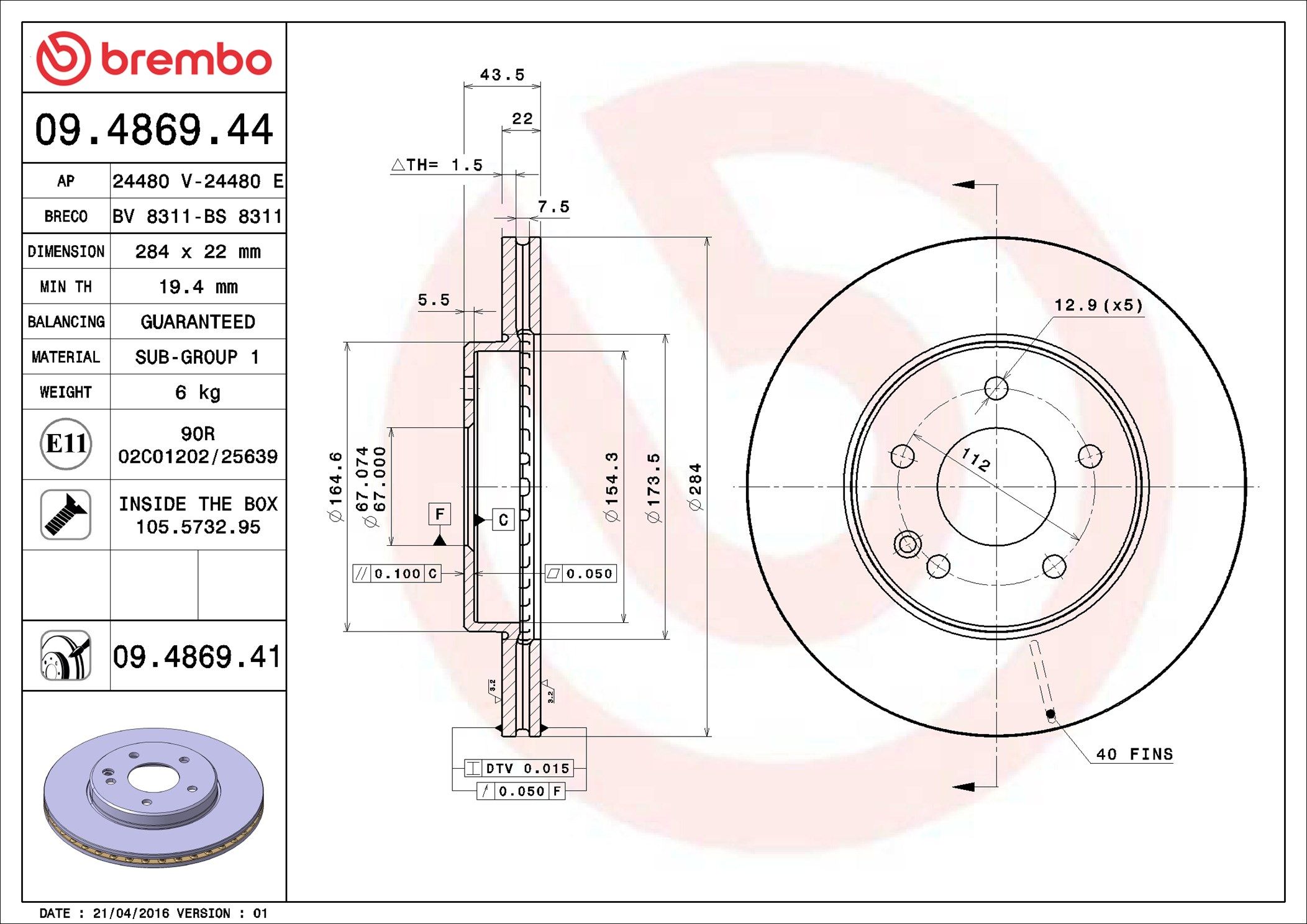 BREMBO 09.4869.41 | Fren Diski Ön UV Coated Mercedes-Benz | 2 Adet