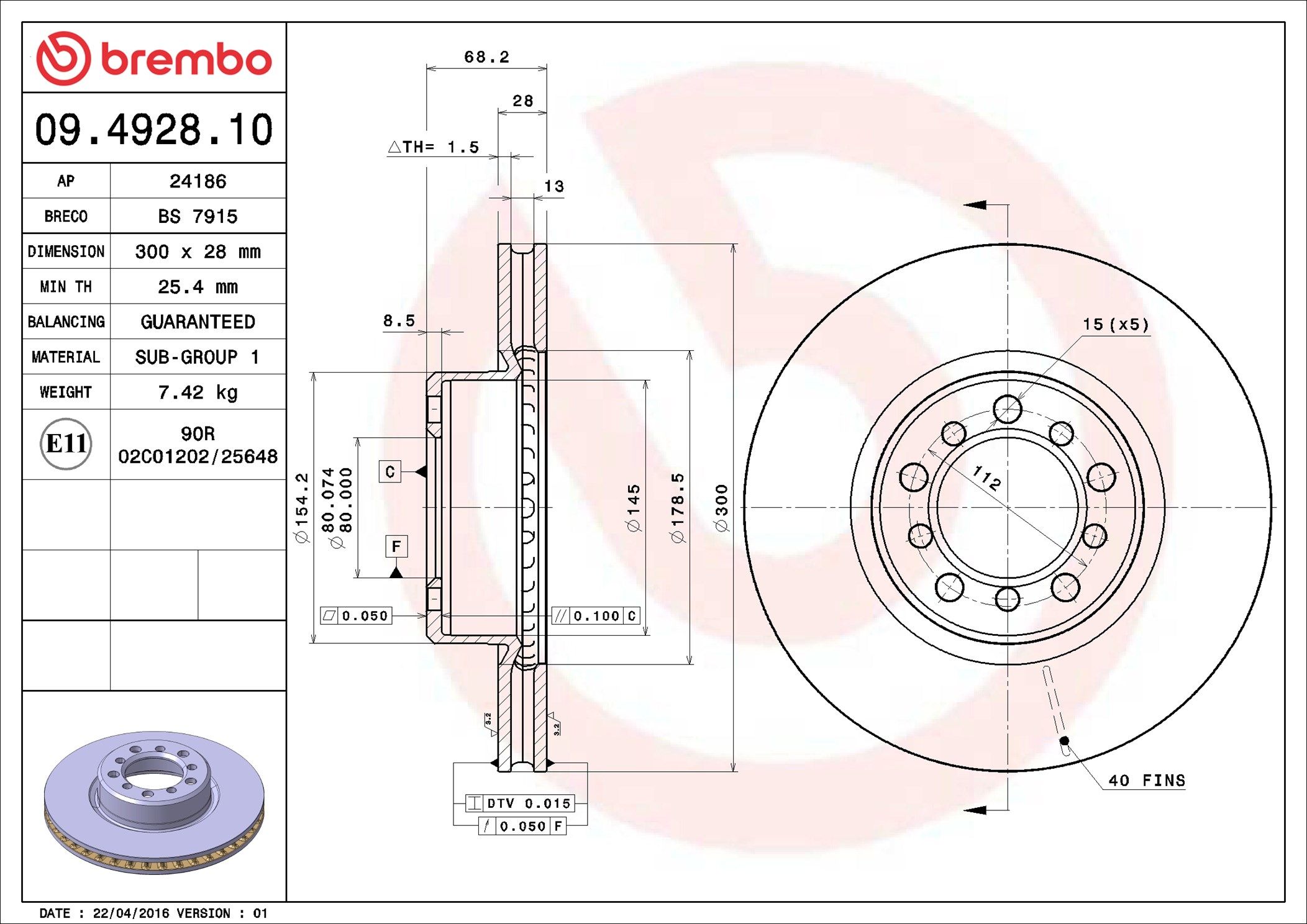 BREMBO 09.4928.10 | Fren Diski Ön Standard Mercedes-Benz | 2 Adet (Fren diski)