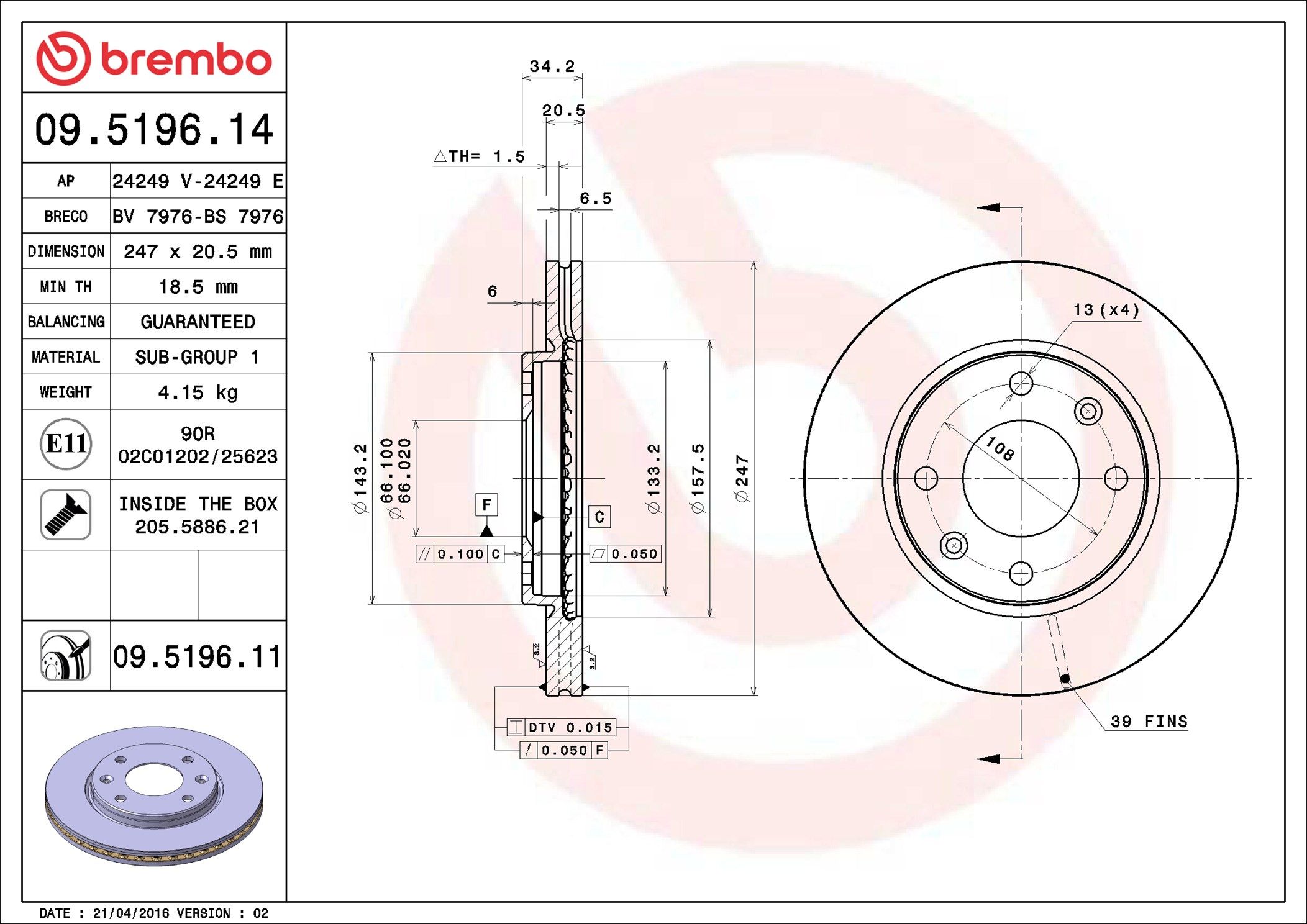 BREMBO 09.5196.14 | Fren Diski Ön Standard Citroen | 2 Adet Takım