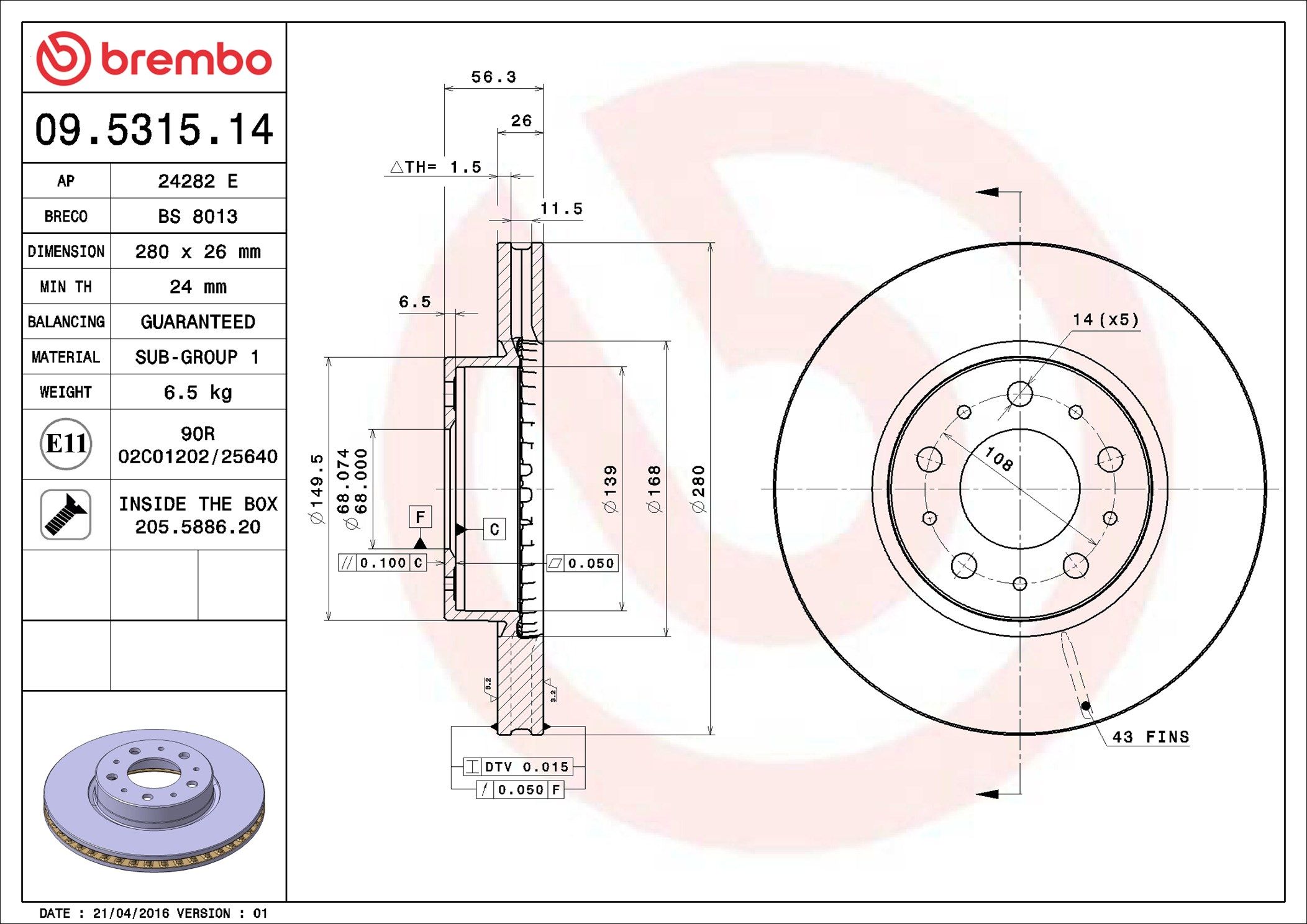BREMBO 09.5315.14 | Fren Diski Ön Standard Volvo | 2 Adet
