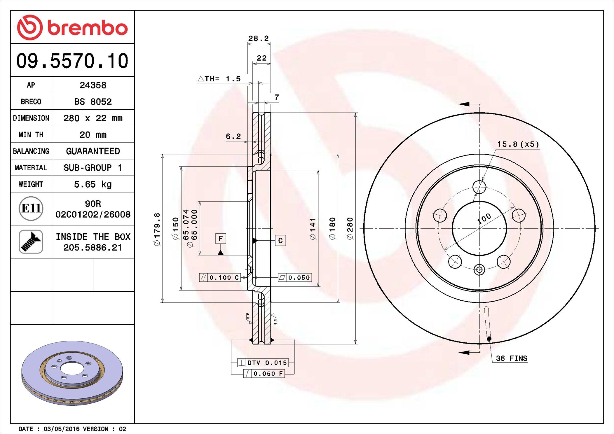 BREMBO 09.5570.10 | Fren Diski Ön Standard VW | 2 Adet