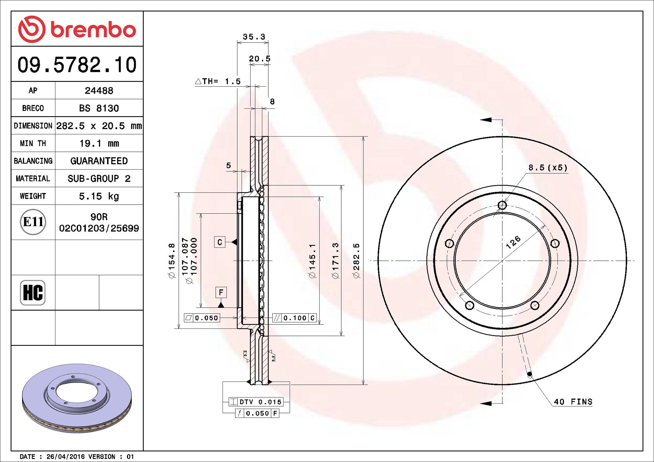 BREMBO 09.5782.10 | Fren Diski Ön Standard Porsche | 2 Adet