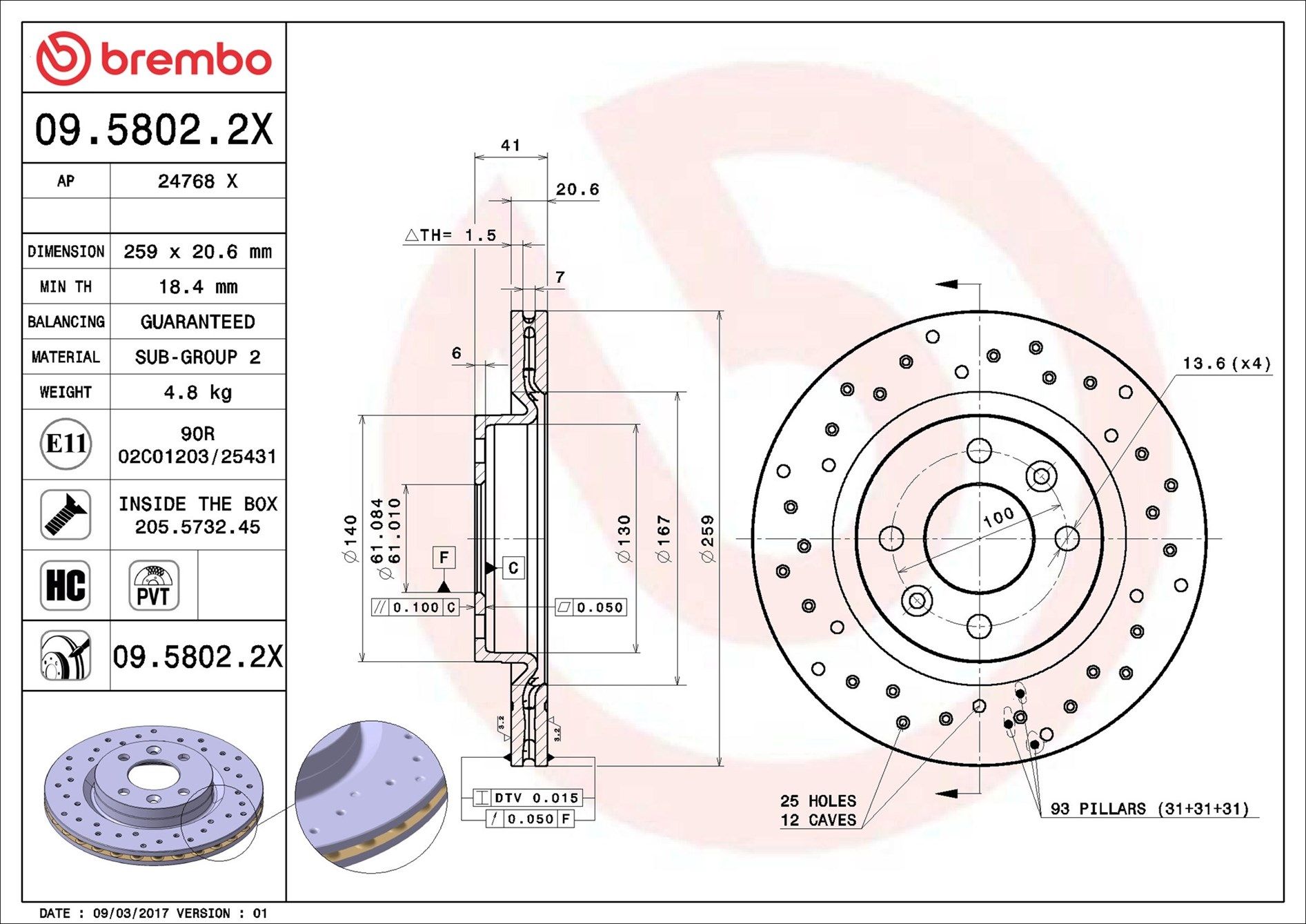 BREMBO 09.5802.2X | Fren Diski Ön Orta Hava Kanallı Clio II Kangoo II Logan Megane I Mcv Symbol Sandero) Delikli