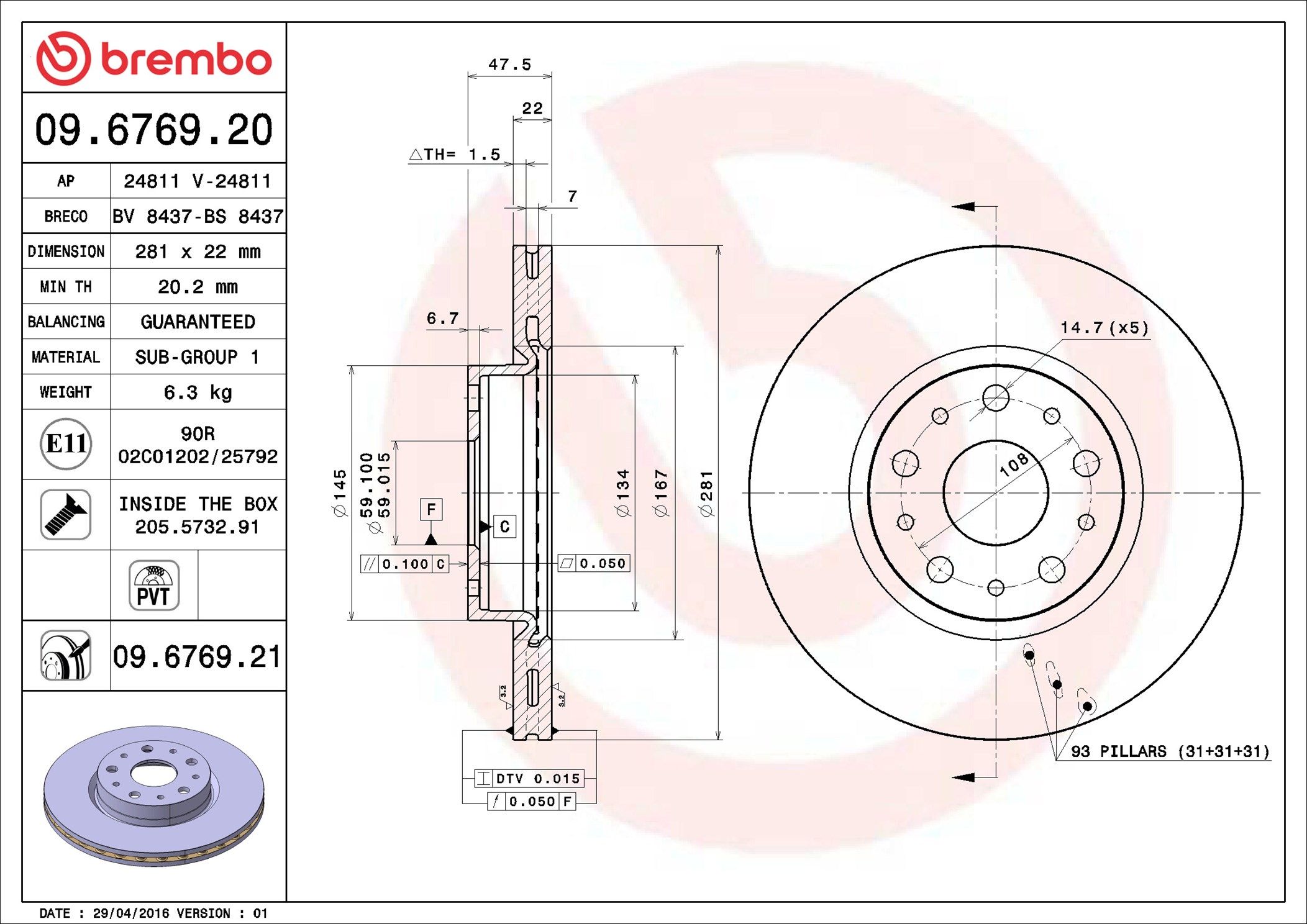 BREMBO 09.6769.21 | Fren Diski Arka UV Coated Lancıa | 2 Adet (Fren diski)