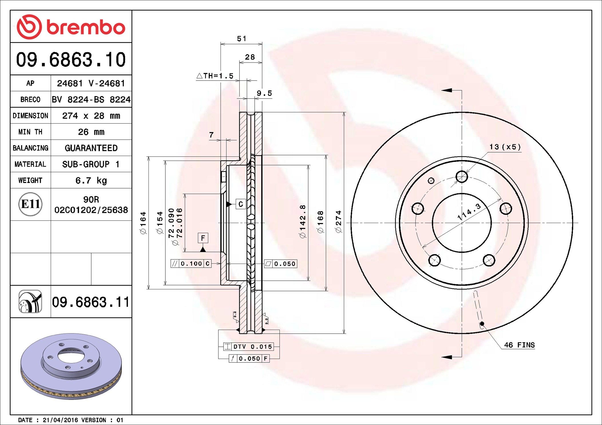 BREMBO 09.6863.11 | Fren Diski Ön UV Coated Mazda | 2 Adet (Fren diski)