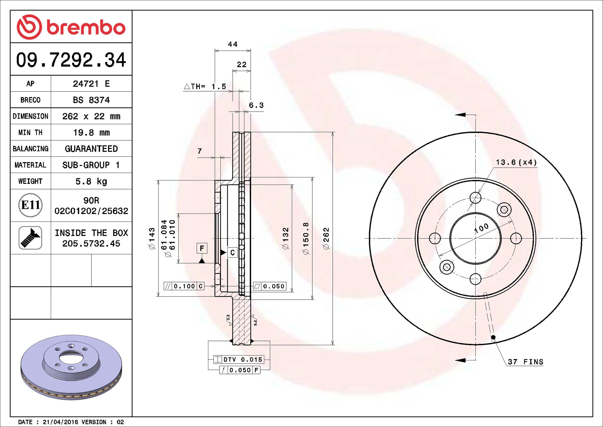 BREMBO 09.7292.34 | Fren Diski Ön Standard Renault | 2 Adet (Fren diski)