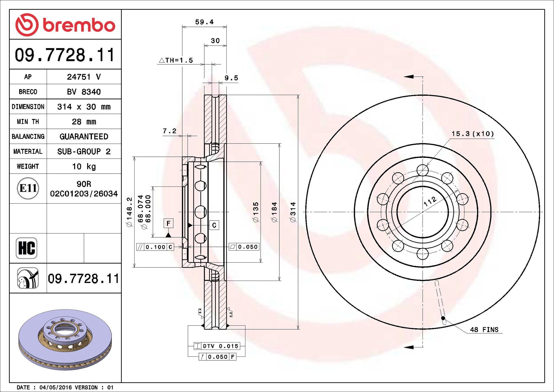 BREMBO 09.7728.11 | Fren Diski Ön UV Coated Audi | 2 Adet (Fren diski)