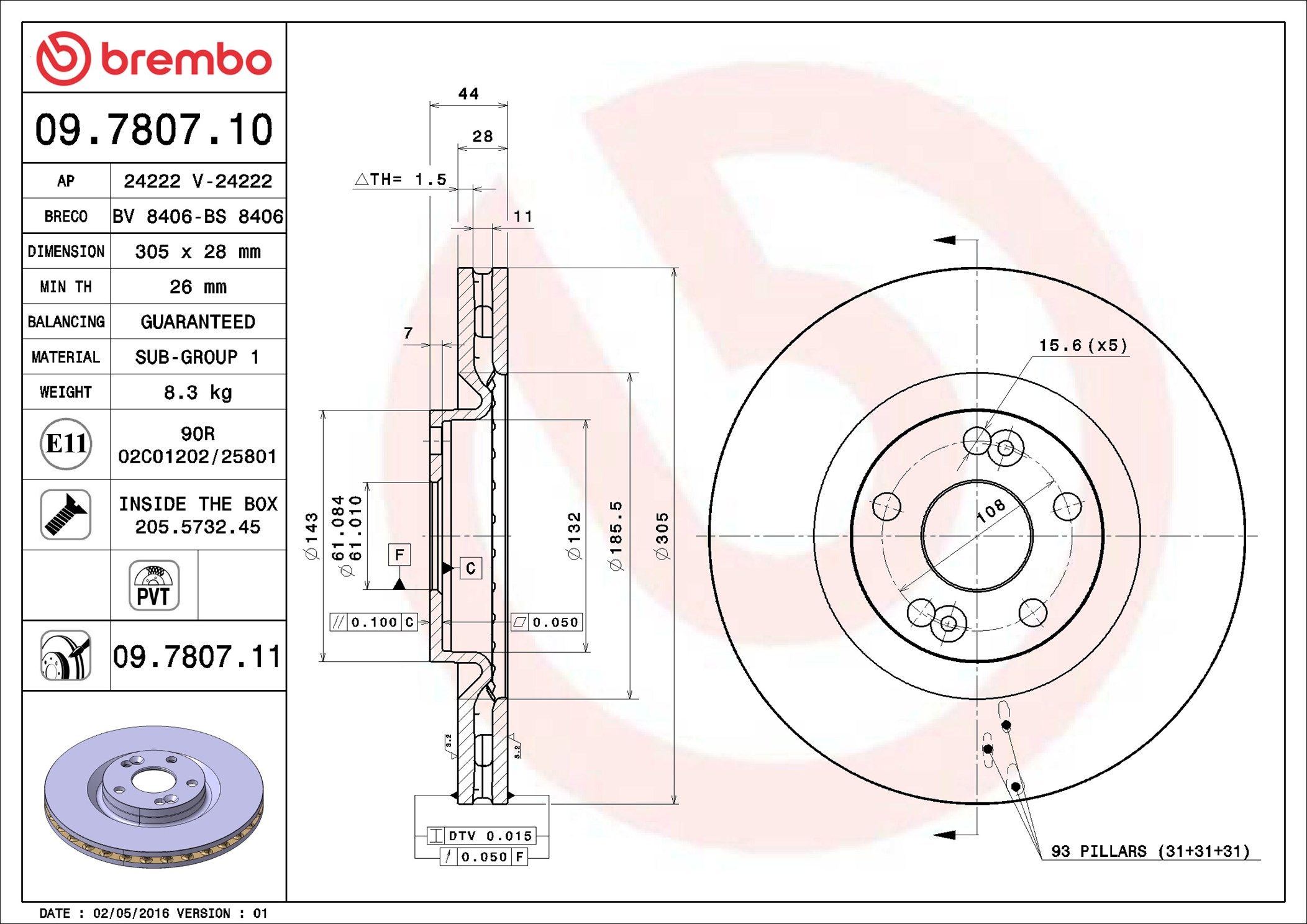 BREMBO 09.7807.11 | Fren Diski Ön UV Coated Renault | 2 Adet