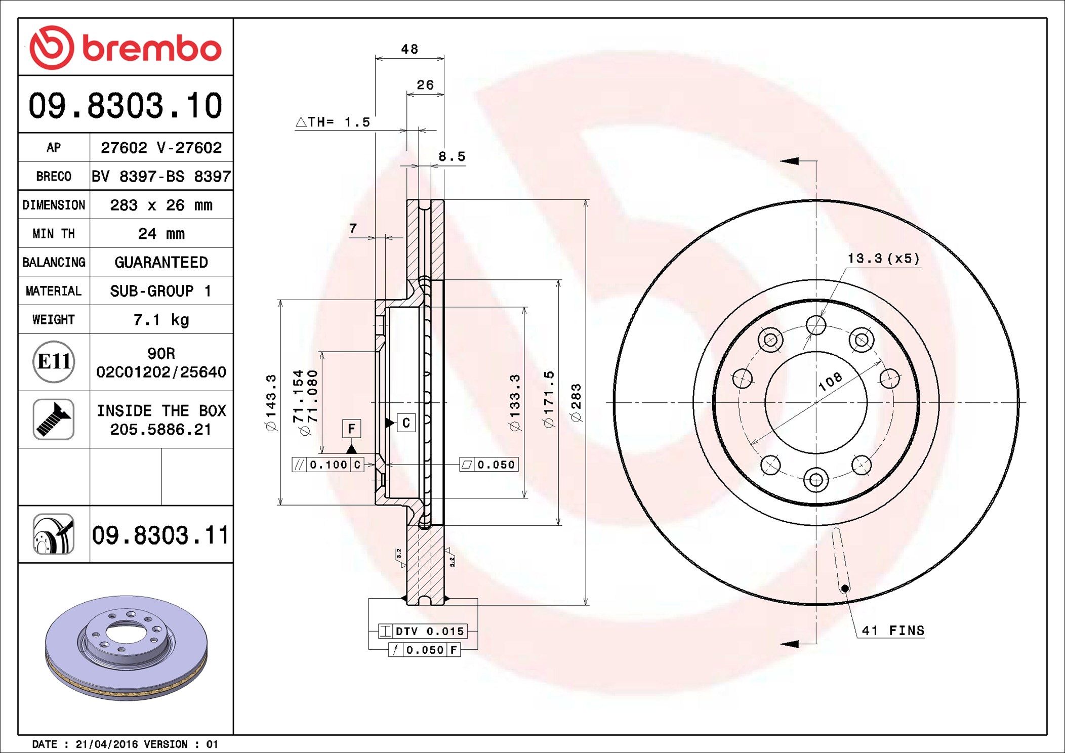 BREMBO 09.8303.11 | Fren Diski Ön UV Coated Peugeot | 2 Adet