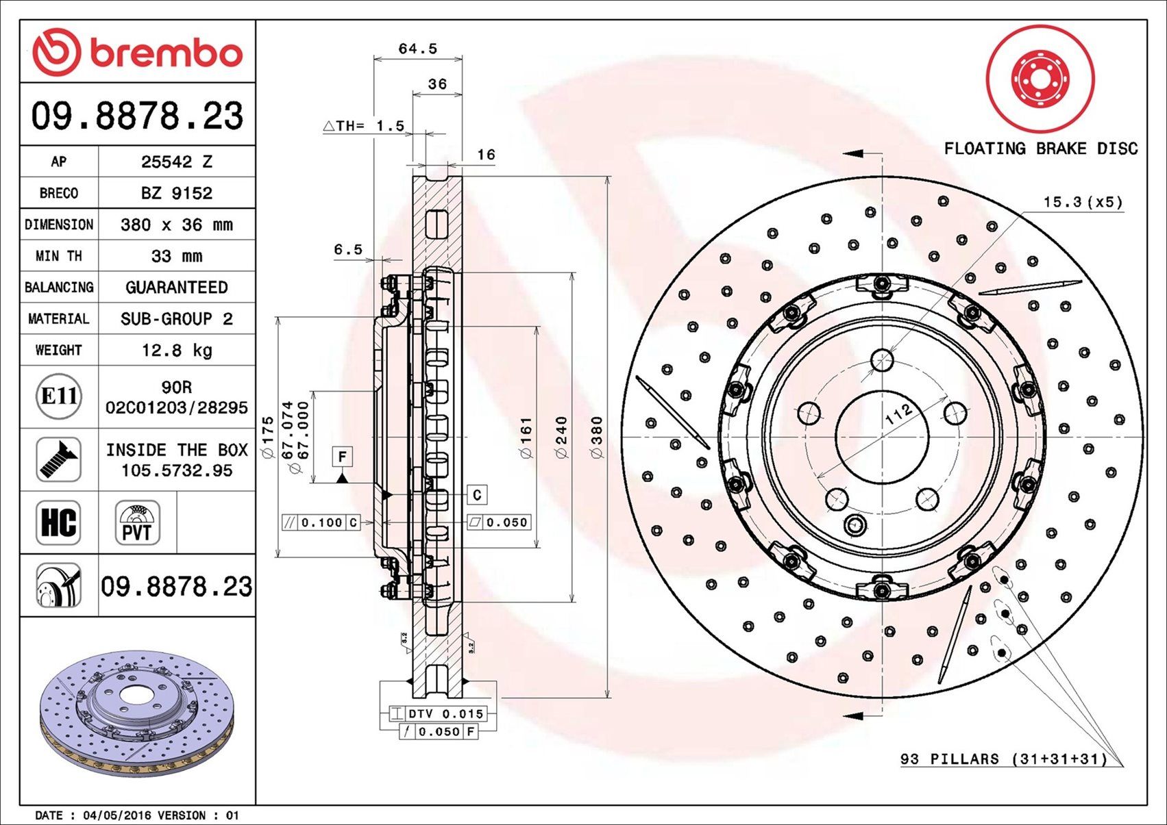 BREMBO 09.8878.23 | Fren Diski Ön Floating Mercedes-Benz | 2 Adet