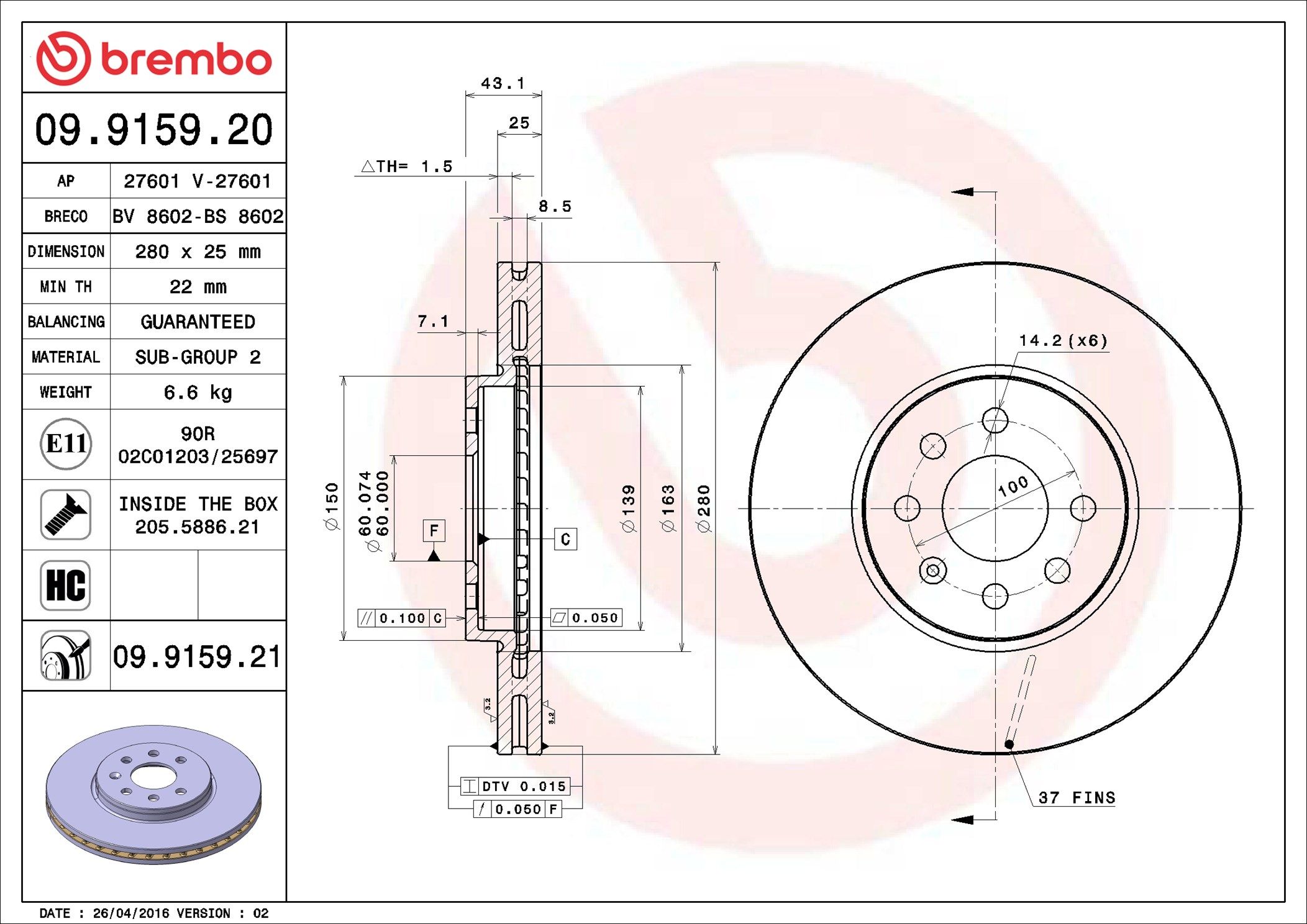 BREMBO 09.9159.20 | Fren Diski Ön Standard Opel | 2 Adet