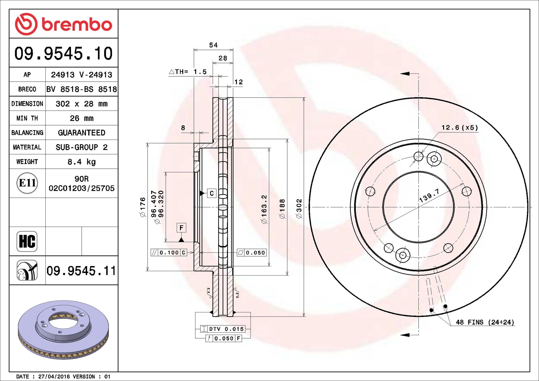 BREMBO 09.9545.10 | Fren Diski Ön Standard Kia | 2 Adet (Fren diski)