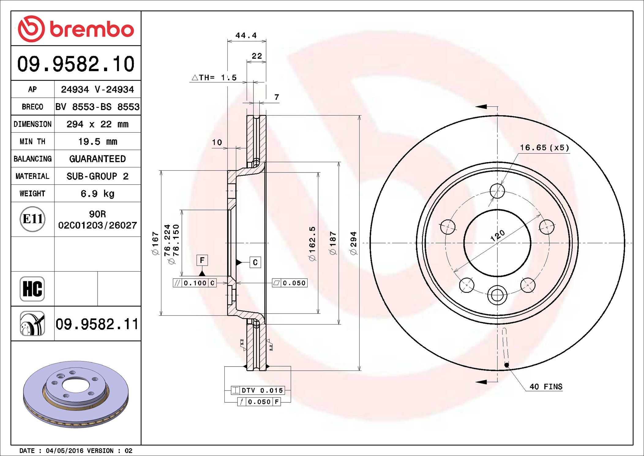 BREMBO 09.9582.10 | Fren Diski Arka (VW Transporter 03 -) | 2 Adet (Fren diski)
