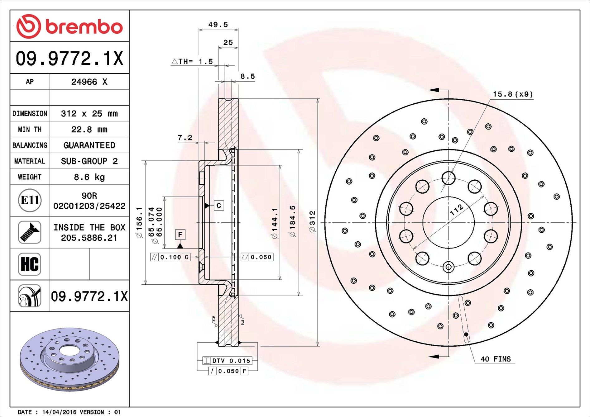 BREMBO 09.9772.1X | Fren Diski Ön Xtra Line-Xtra (VW Caddy 04-Golf 04-Passat 06-Audi A3 04-Seat Leon 06- | 2 Adet