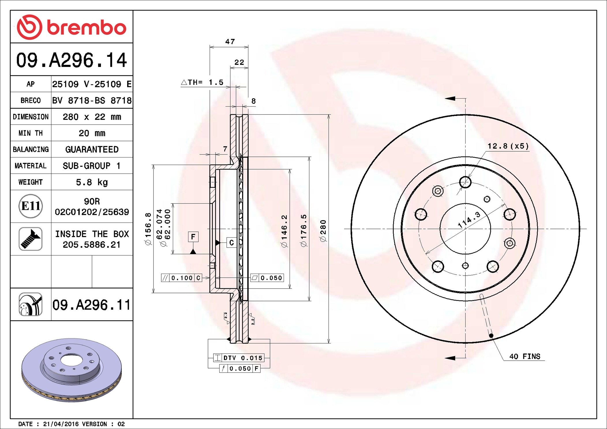 BREMBO 09.A296.14 | Fren Diski Ön Standard Fiat | 2 Adet (Fren diski)