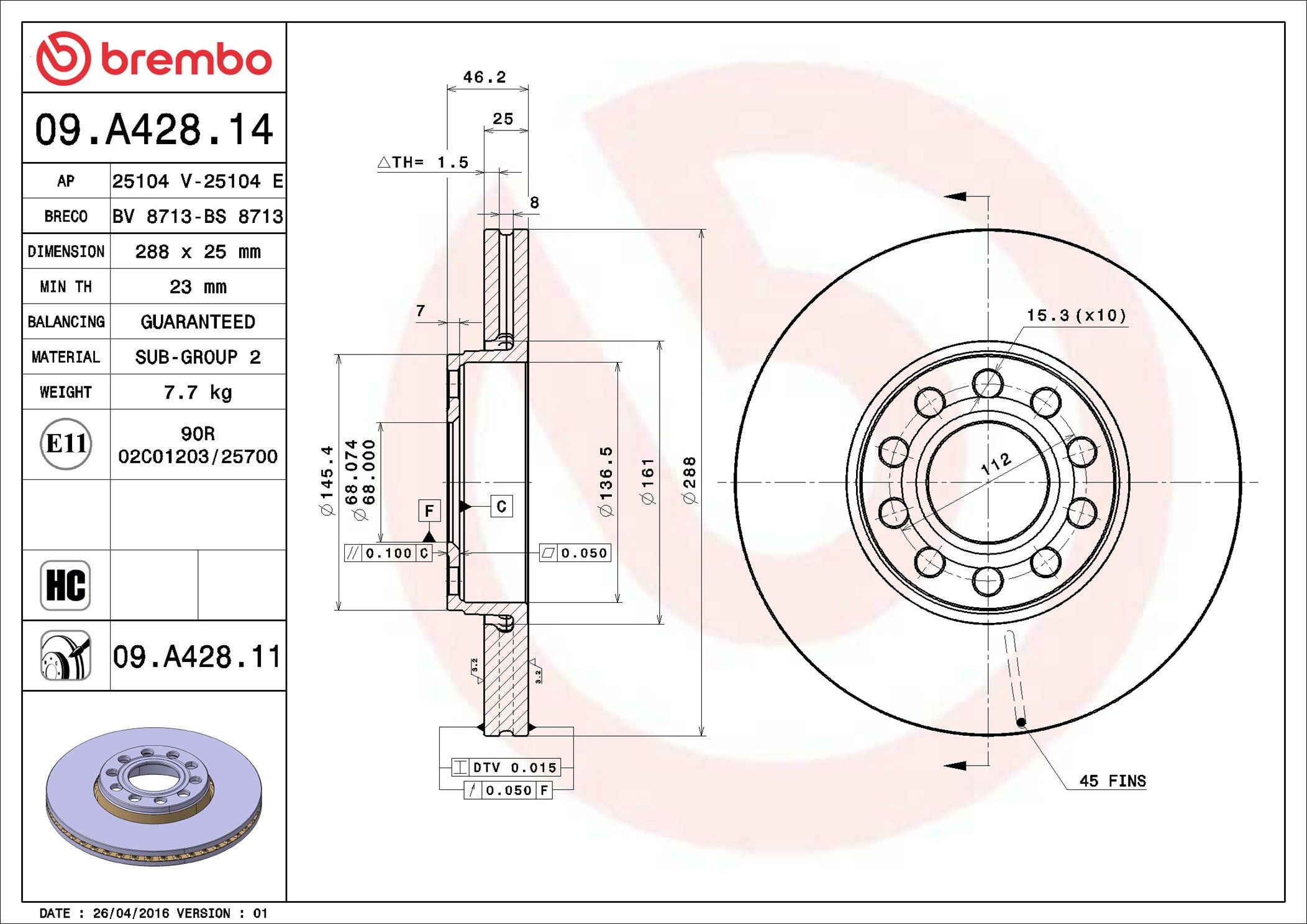 BREMBO 09.A428.11 | Fren Diski Ön UV Coated VW | 2 Adet (Fren diski)