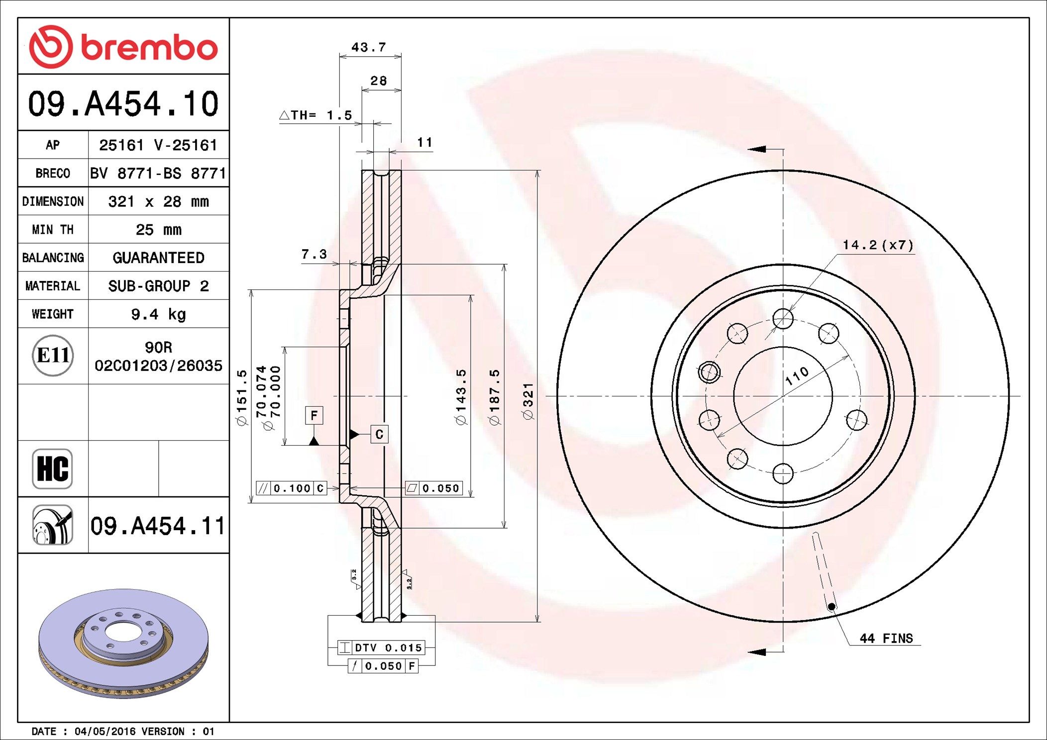 BREMBO 09.A454.11 | Fren Diski Ön UV Coated Opel | 2 Adet