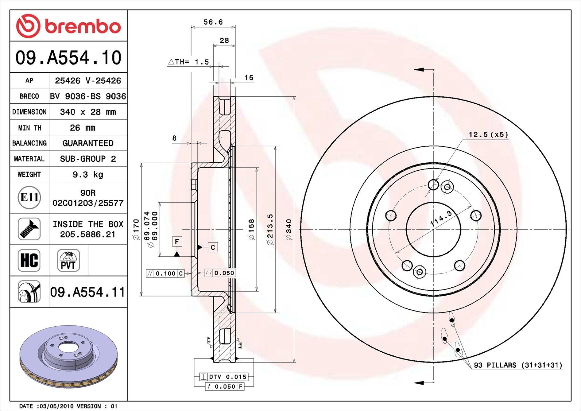 BREMBO 09.A554.11 | Fren Diski Ön UV Coated Hyundai | 2 Adet (Fren diski)