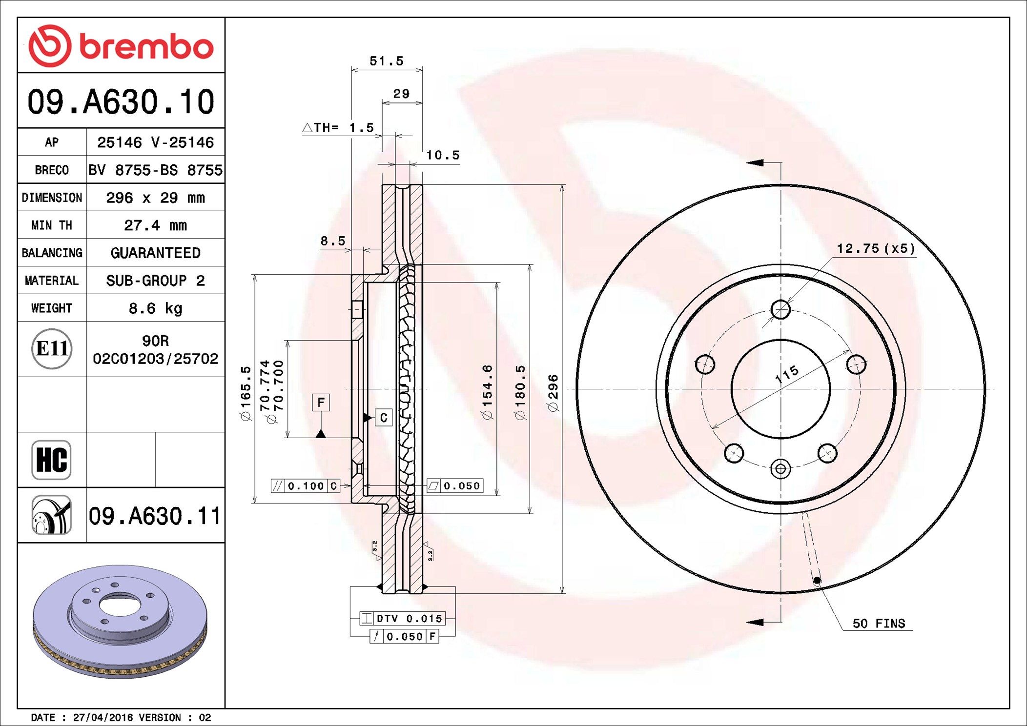 BREMBO 09.A630.11 | Fren Diski Ön UV Coated Chevrolet | 2 Adet