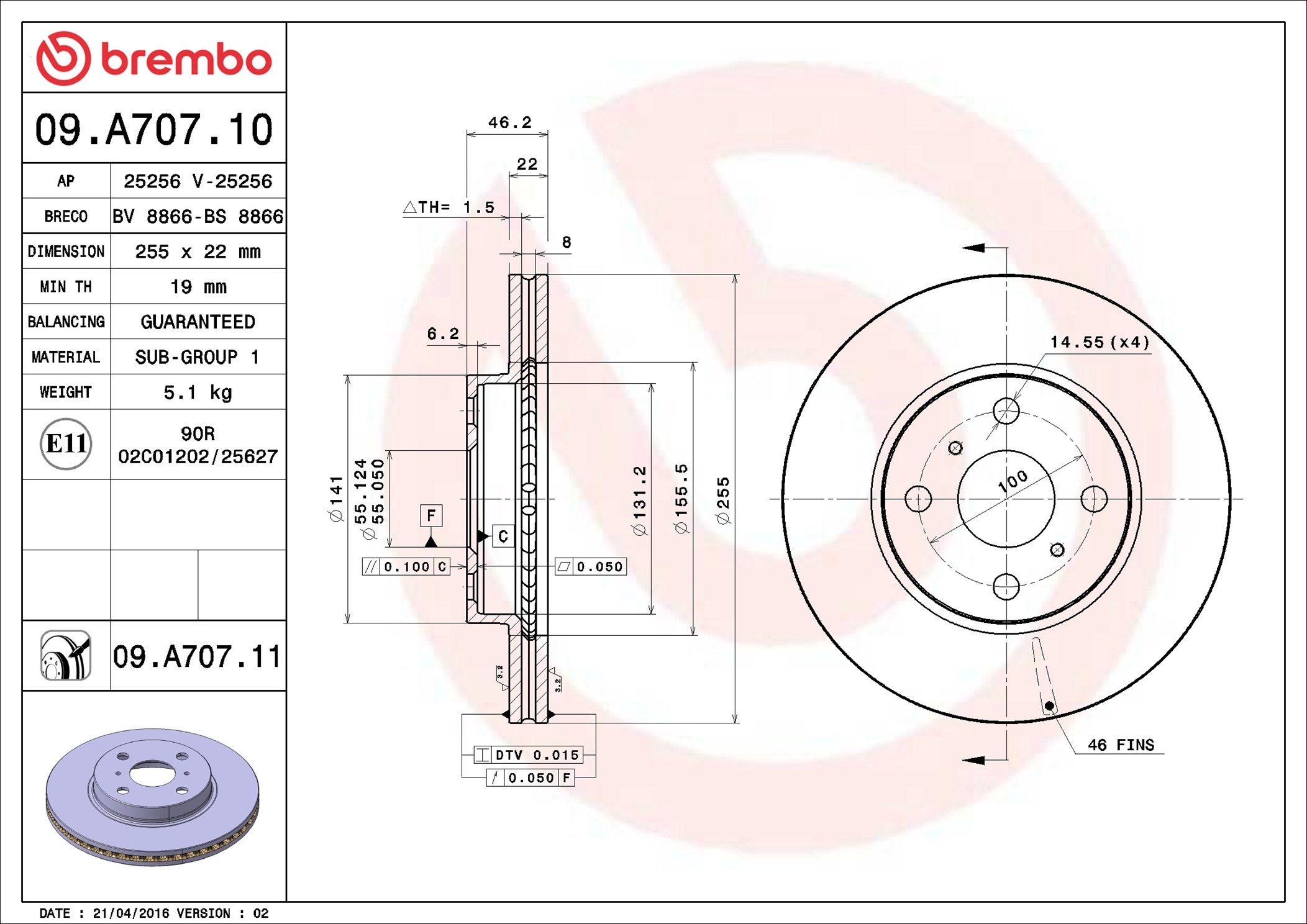 BREMBO 09.A707.11 | Fren Diski Ön UV Coated Toyota | 2 Adet (Fren diski)