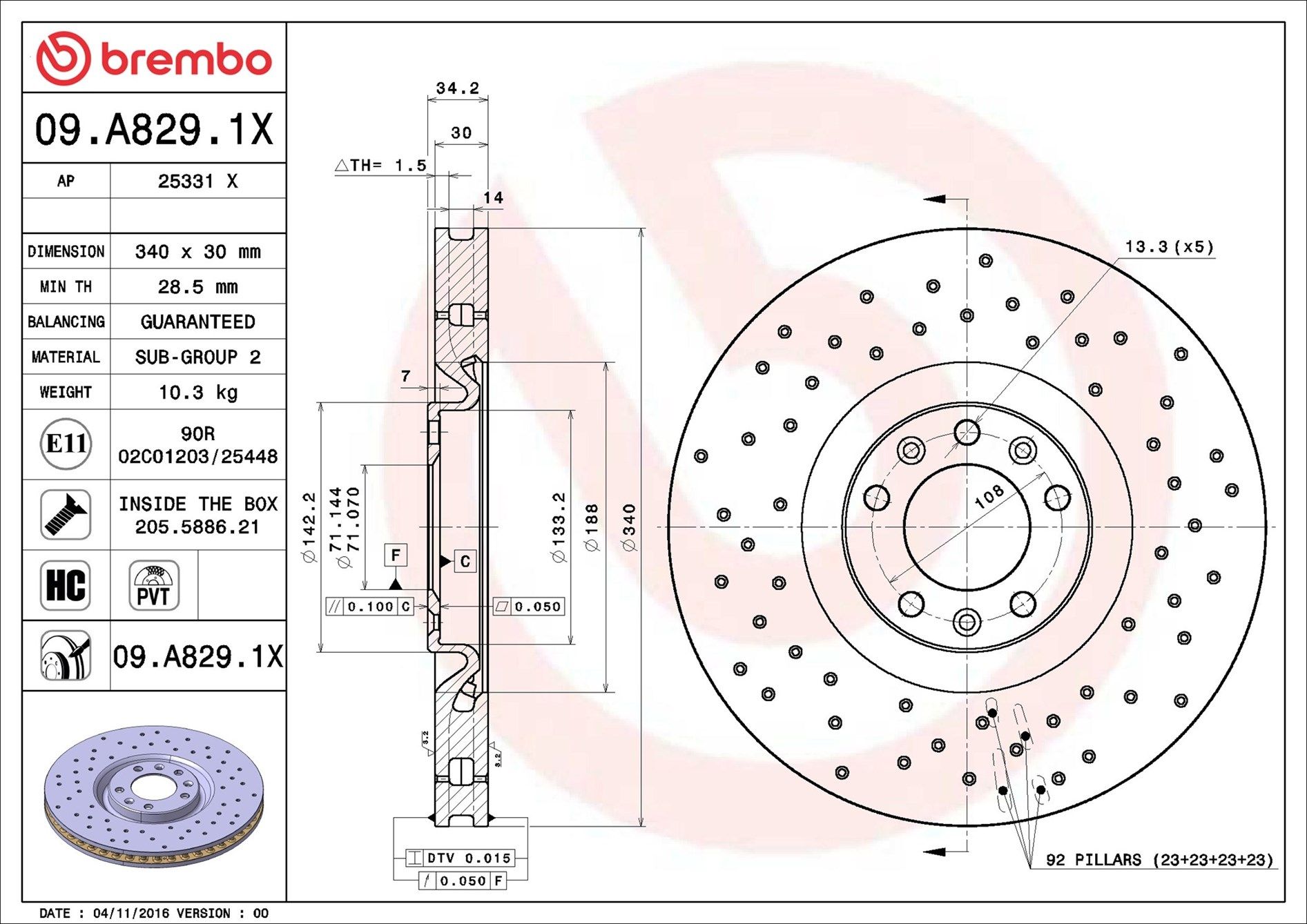 BREMBO 09.A829.1X | Fren Diski Ön Xtra Peugeot | 2 Adet